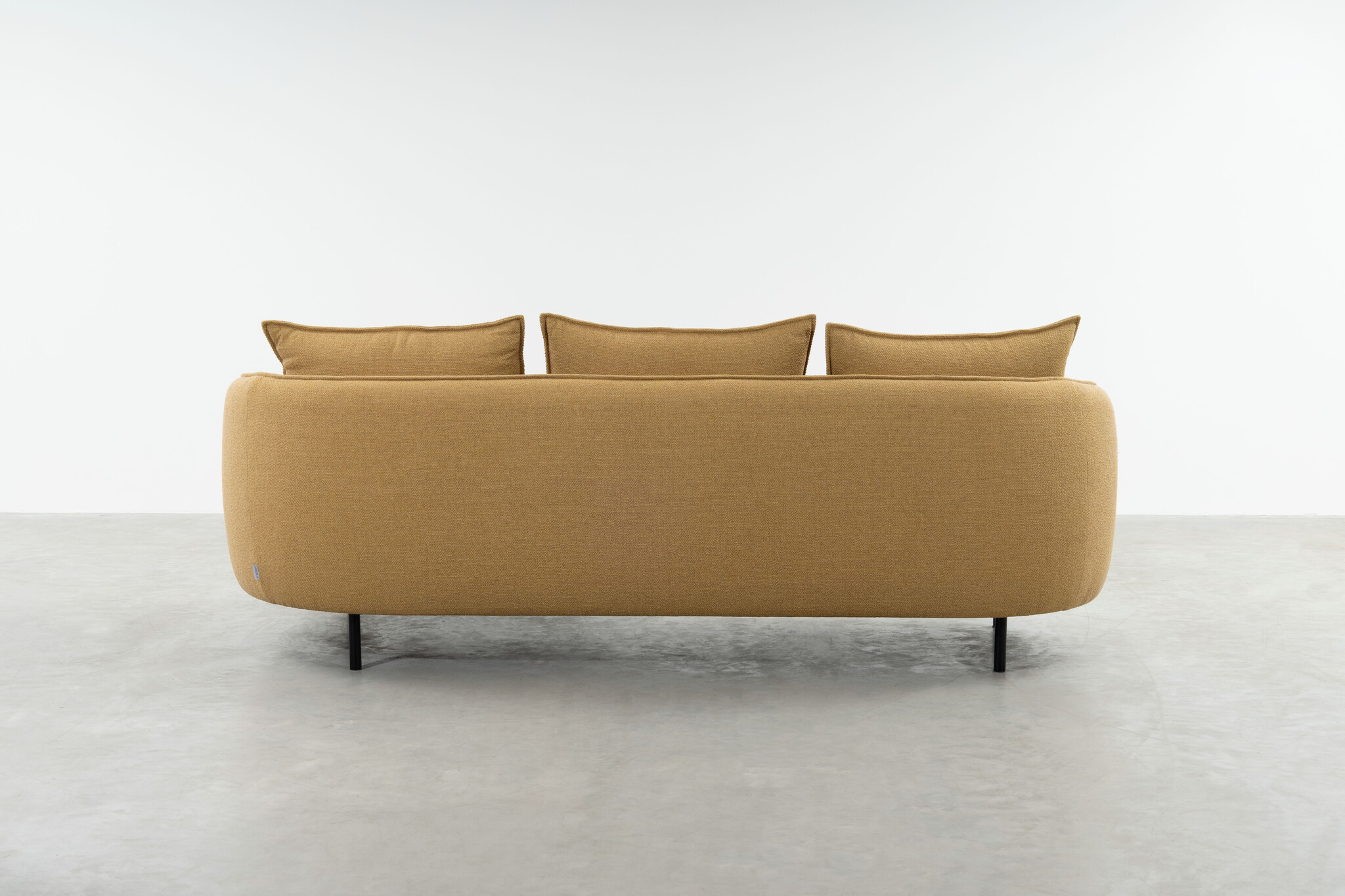 Design sofa Nomah is available as a 2.5-seater, 3-seater, armchair and pouf. The asymmetry means a gradient in the seat depth. So nestle in the widest part or be more active on the other side. The black, metal legs give the sofa some lightness and the loose back cushions add to the playful character. Nomah shows the most soft, organic side of Scandinavian design.