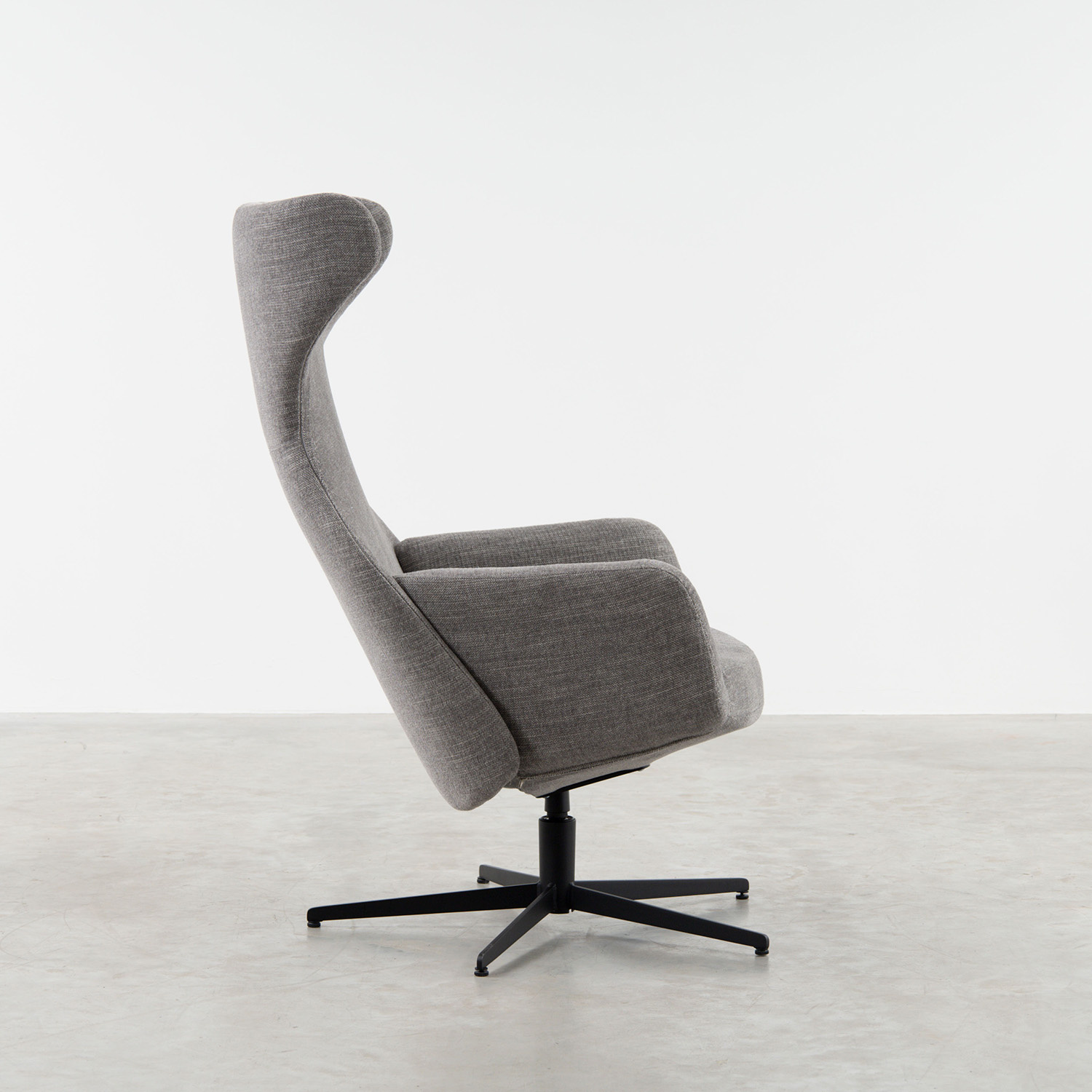 Sit comfortably with your feet on the matching footstool. You feel secure thanks to the comfortable seat and the well-shaped back. Just turn the chair for a moment. And also feel how the backrest is infinitely adjustable.