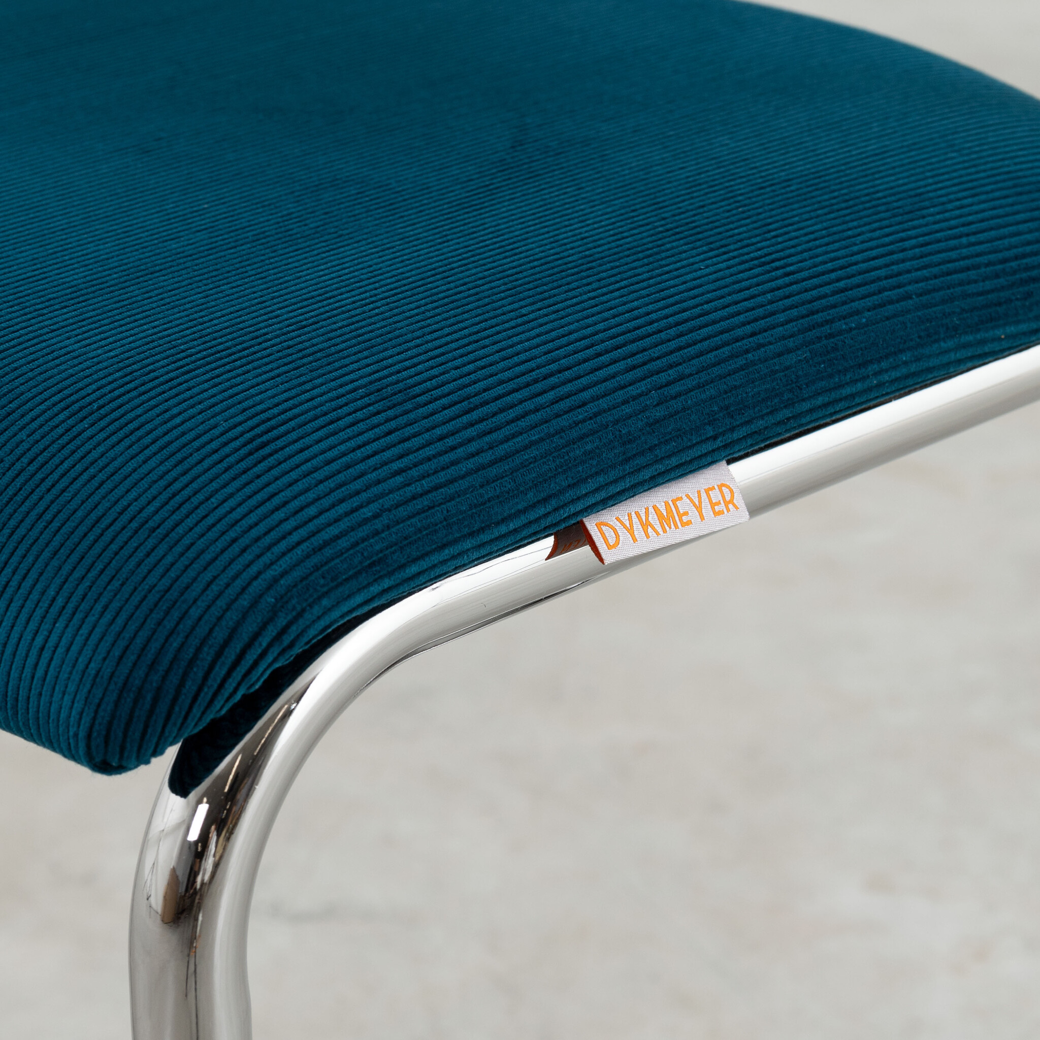 The Dykmeyer De Purmer is a tubular frame cantilever chair. Inspired by the Avant Garde chairs from the 1930s. The chair has a modern industrial look. With a good seat, it is an ideal dining room chair. The tubular frame has right angles and runs parallel to each other from the carriage to the backrest. Due to the kink in the tubular frame, the backrest is slightly tilted. This provides the right support for a delicious meal. The Bakelite armrests ensure that your arms also receive support. With its solid quality, the De Dykmeyer Purmer is suitable for catering, business and private use.