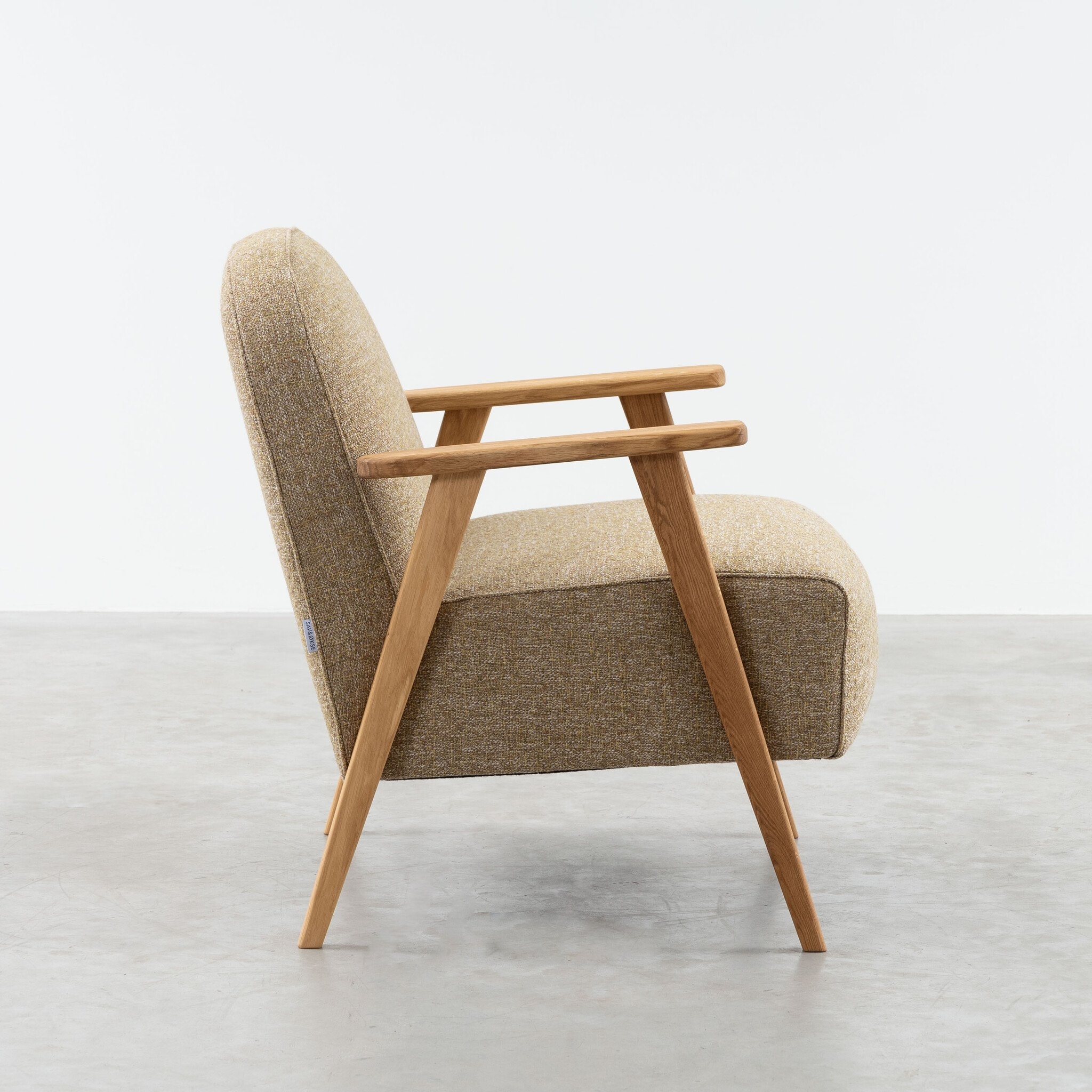 The Ebbe armchair combines the refreshing feel of a winter walk with the cosiness of a crackling fire. This Scandinavian chair boasts a timeless design, making it a perfect fit for various interior styles. The frame is crafted from oak wood with an oiled finish, with armrests resting elegantly on the angled legs. For those seeking the ultimate relaxation experience, a matching footstool is available. What more could you ask for?