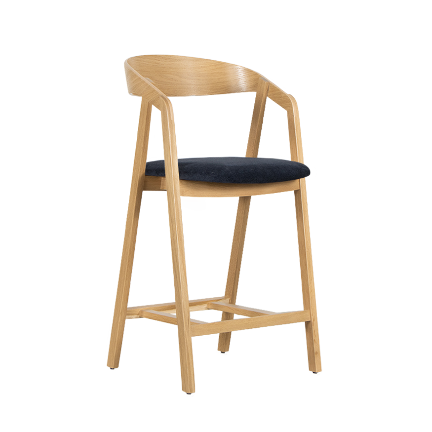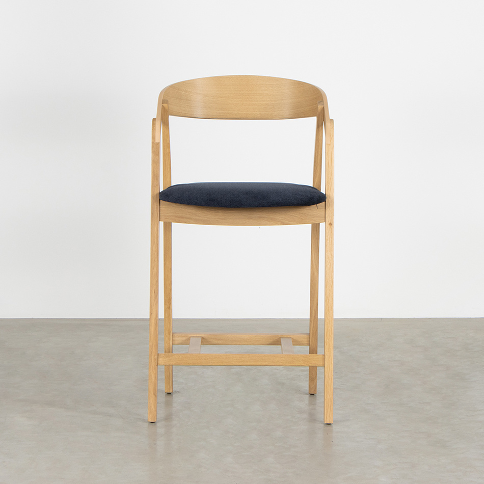 The Edske Counter Barstool is a comfortable and well-designed barstool with a Scandinavian design. It has been designed from a practical and sober perspective and made of high-quality oak wood by skilled craftsmen in Europe. The minimalist design, round shapes, and beautiful finishing are distinctive features of this barstool. Thanks to the frame construction where the leg continues and supports the backrest, this barstool provides optimal support. The curved backrest provides a natural shape and maximum comfort. The Edske Counter Barstool is available in natural oak with both wooden and upholstered seat options and has a seat height of 67 cm, ideal for use at a kitchen island.