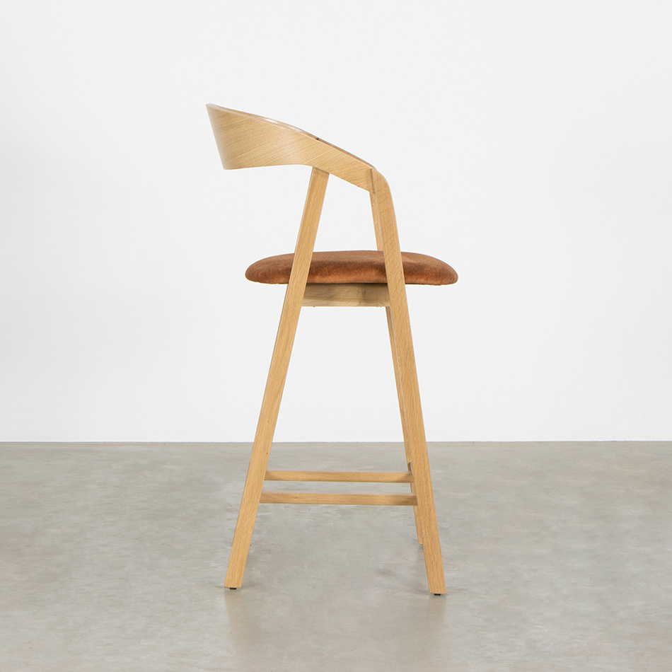 The Edske Counter Barstool is a comfortable and well-designed barstool with a Scandinavian design. It has been designed from a practical and sober perspective and made of high-quality oak wood by skilled craftsmen in Europe. The minimalist design, round shapes, and beautiful finishing are distinctive features of this barstool. Thanks to the frame construction where the leg continues and supports the backrest, this barstool provides optimal support. The curved backrest provides a natural shape and maximum comfort. The Edske Counter Barstool is available in natural oak with both wooden and upholstered seat options and has a seat height of 67 cm, ideal for use at a kitchen island.