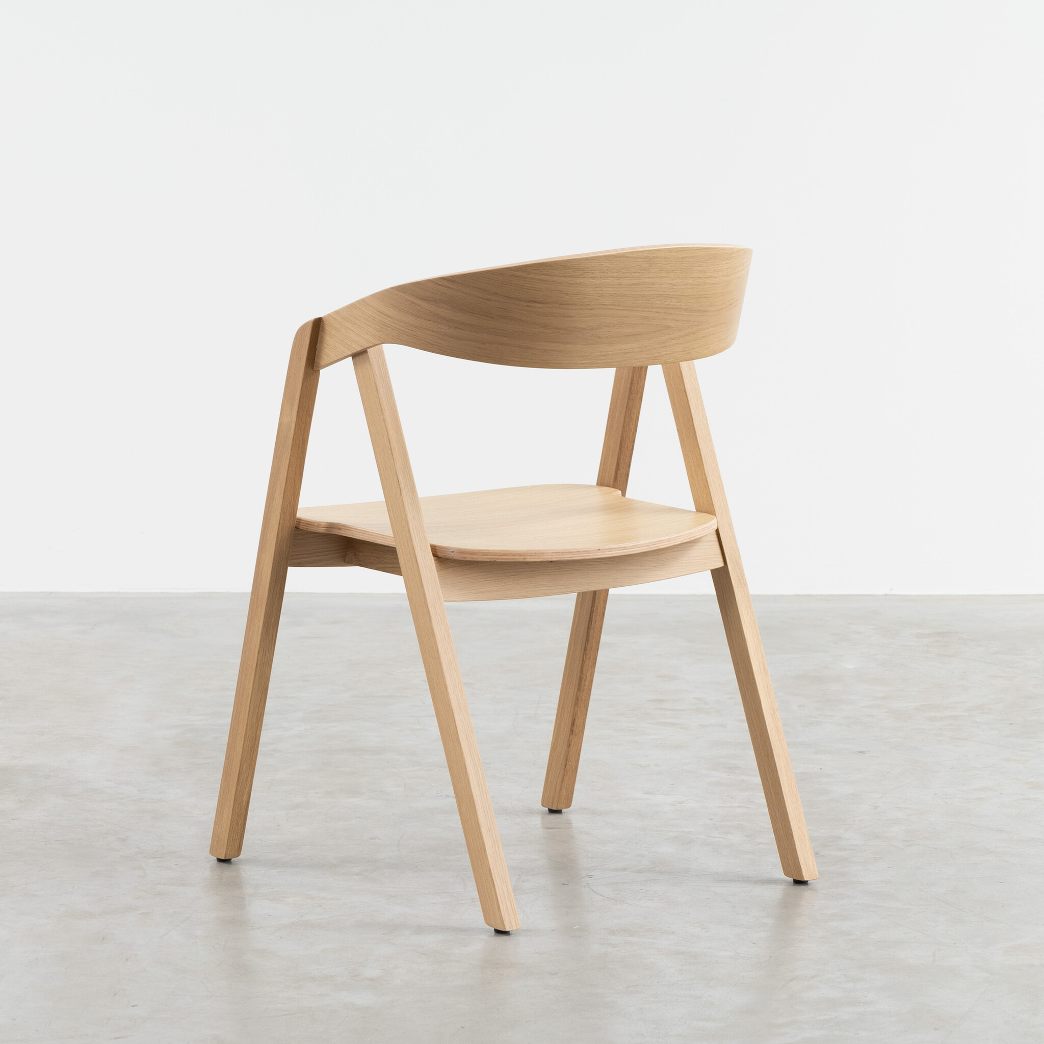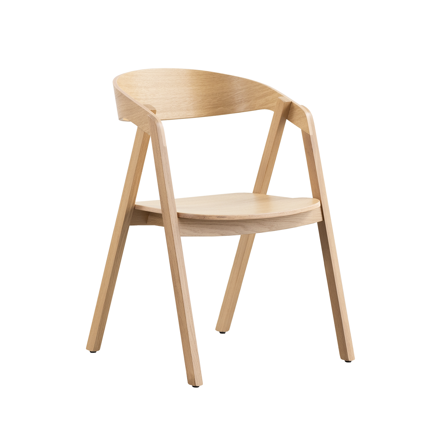 The Edske is a compact, well-shaped and comfortable dining room chair with Scandinavian design. Designed from a practical and down-to-earth point of view. Made of high-quality oak, by real craftsmen in Europe. Characteristic is the minimalist design, the round shapes and beautiful finish of this dining room chair. The chair has a frame construction in which the leg continues and thus supports the backrest. The curved backrest provides a natural shape and optimal comfort. Available in natural oak, black stained or beech walnut stained, with wooden or upholstered seat.