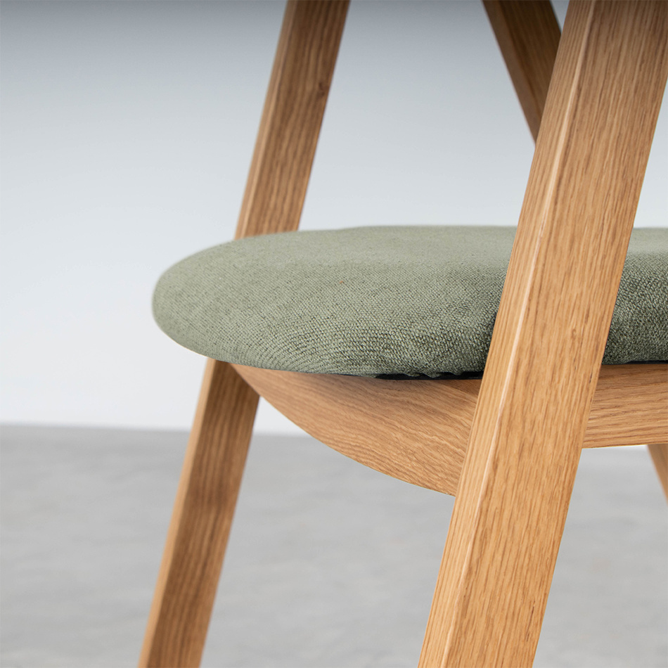 This Edske chair is available in natural oak with an upholstered seat in different types and colours of fabric. The chair is available in Comeback fabrics as standard. It is also possible to choose one of the many other fabrics we have. We have fabrics from Keymer, Lancier, Textaafoam, Kvadrat, De Ploeg, Bute and Silvera. You can come and see the fabrics in our showrooms and get advice from our employees.