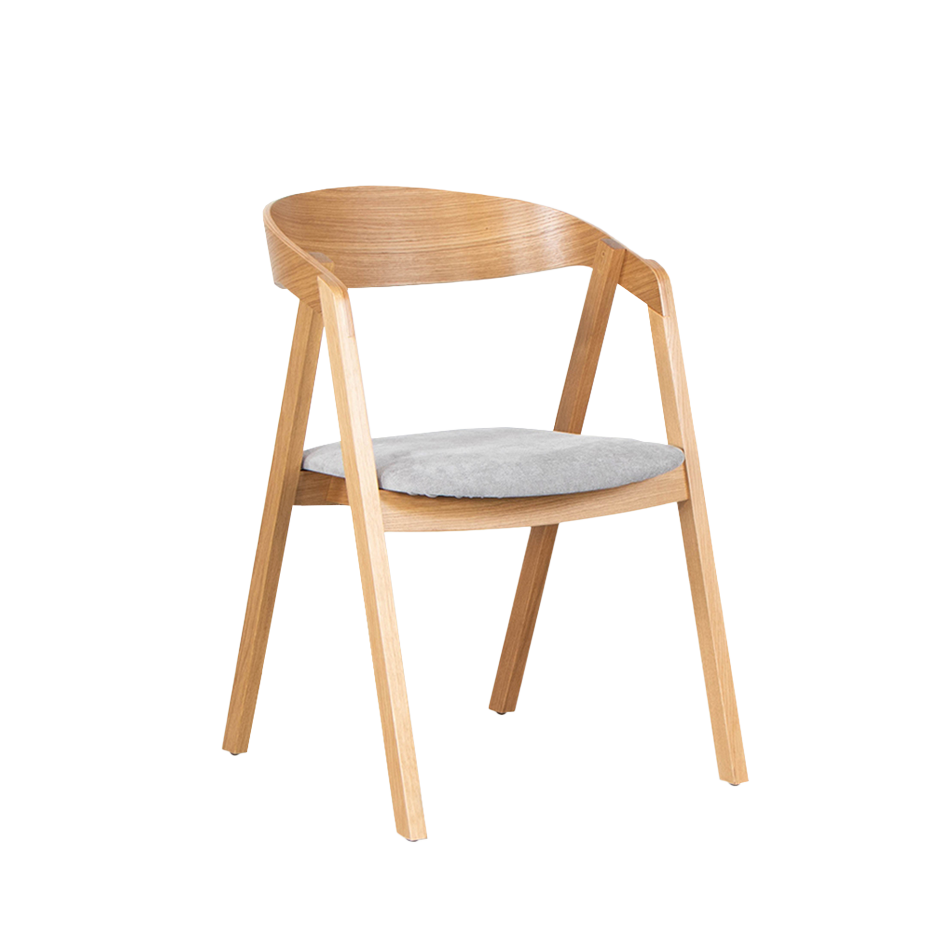 The Edske is a compact, well-shaped and comfortable dining room chair with Scandinavian design. Designed from a practical and down-to-earth point of view. Made of high-quality oak, by real craftsmen in Europe. Characteristic is the minimalist design, the round shapes and beautiful finish of this dining room chair. The chair has a frame construction in which the leg continues and thus supports the backrest. The curved backrest provides a natural shape and optimal comfort. Available in natural oak, black stained or beech walnut stained, with wooden or upholstered seat.