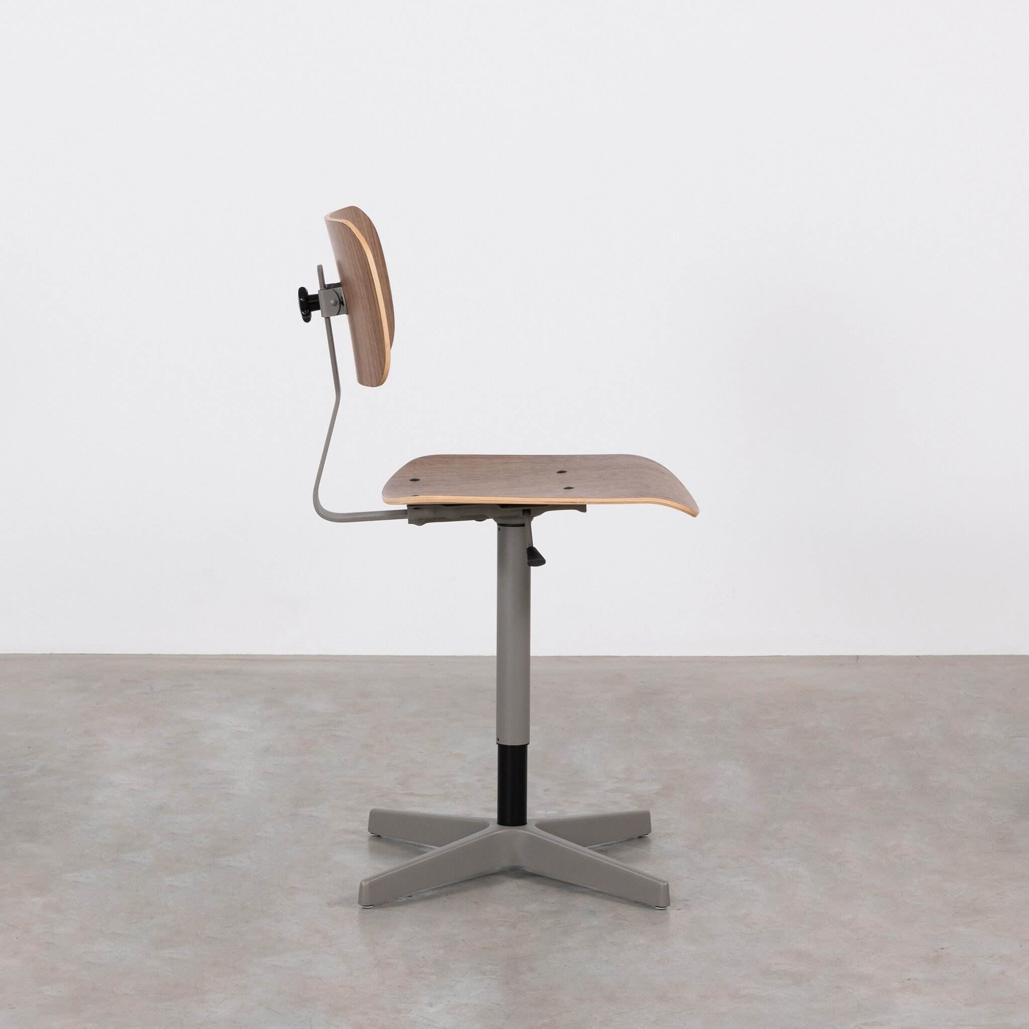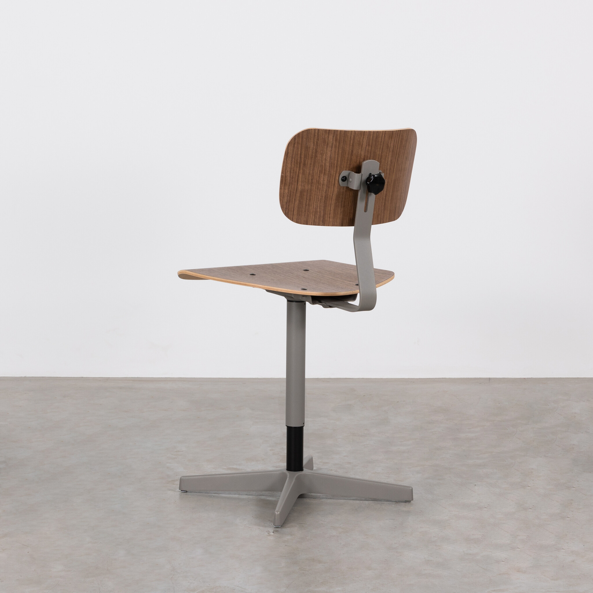 A standout feature is the frame, available in 5 different powder-coated colors. Whether you choose graphite black, brown beige, mouse grey, grey beige, or light ivory, this work chair seamlessly complements any style and taste. The seat and backrest are available in oak or walnut veneer.
