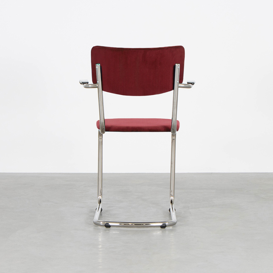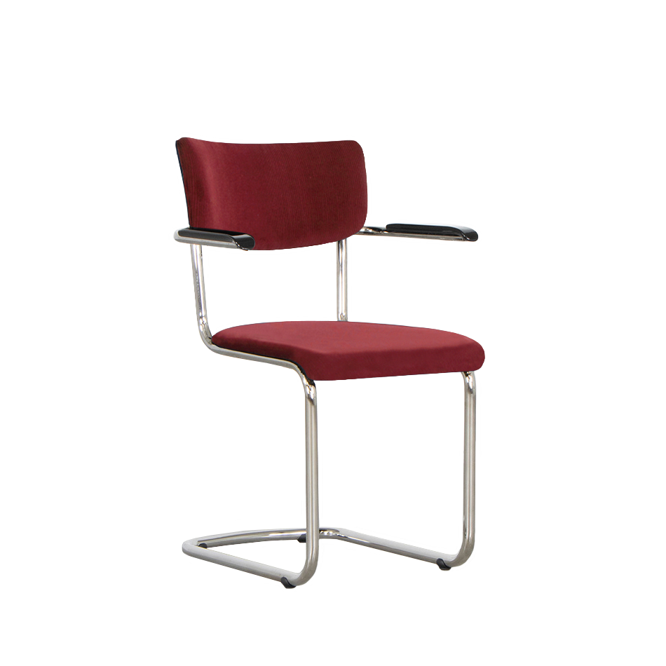 This tubular frame chair Elsene is available in different types and colours of fabric. The chair is standard available in Manchester rib fabrics. It is also possible to choose one of the many other fabrics we have. We have fabrics from Keymer, Lancier, Textaafoam, Kvadrat, De Ploeg and Gabriel. You can view the fabrics in our showrooms.
