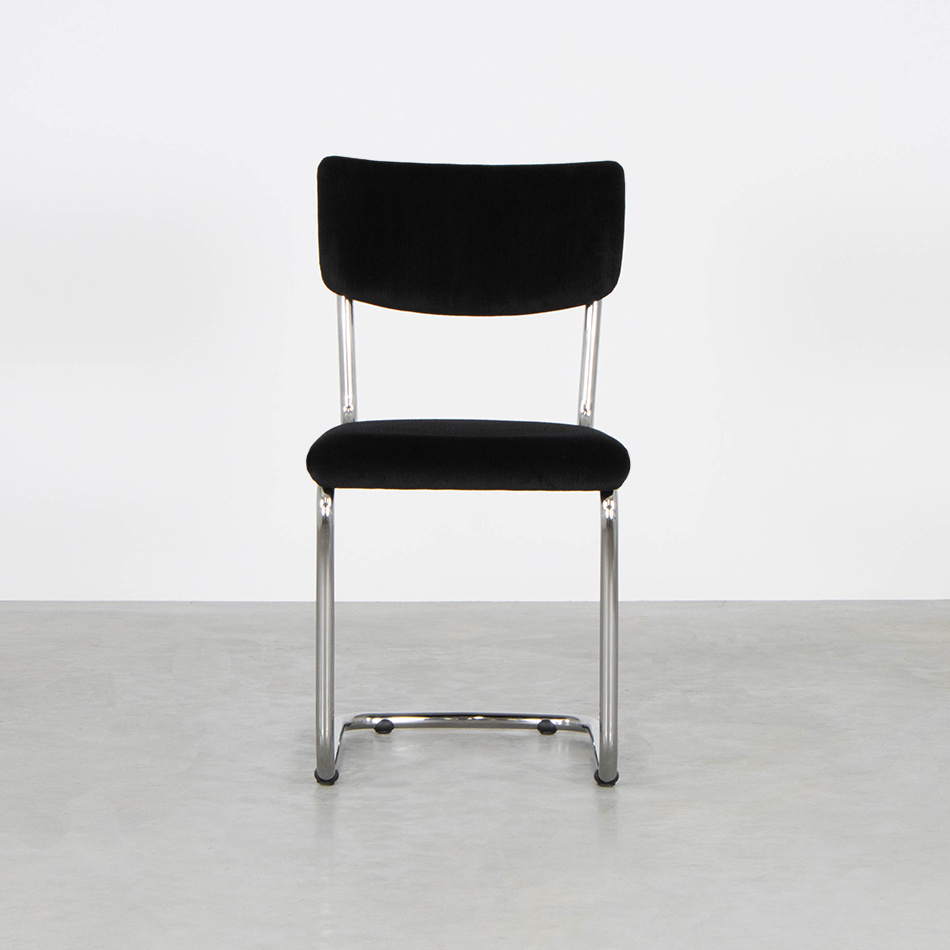 This tubular frame chair Elsene is available in different types and colours of fabric. The chair is standard available in Manchester rib fabrics. It is also possible to choose one of the many other fabrics we have. We have fabrics from Keymer, Lancier, Textaafoam, Kvadrat, De Ploeg and Gabriel.You can view the fabrics in our showrooms.
