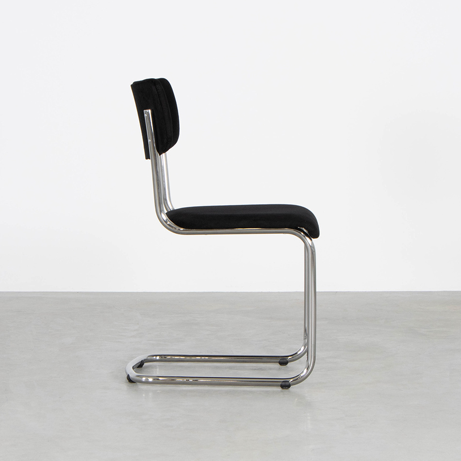 A tubular frame chair with graceful curves, that is the Tubax Elsene. The seat has a slightly tapered shape and the back has a different shape. This gives the chair an elegant character. Combined with the modern industrial look of the tubular frame, this makes the Tubax Elsene a particularly stylish dining room chair. The Elsene also has the well-known spring capacity of tubular frame chairs. This makes it a wonderfully comfortable chair to sit on for hours. Suitable for private and business use.