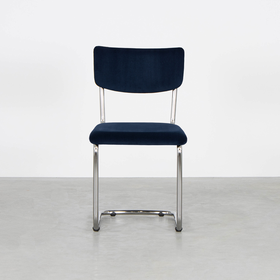 This tubular frame chair Elsene is available in different types and colours of fabric. The chair is standard available in Manchester rib fabrics. It is also possible to choose one of the many other fabrics we have. We have fabrics from Keymer, Lancier, Textaafoam, Kvadrat, De Ploeg and Gabriel. You can view the fabrics in our showrooms.