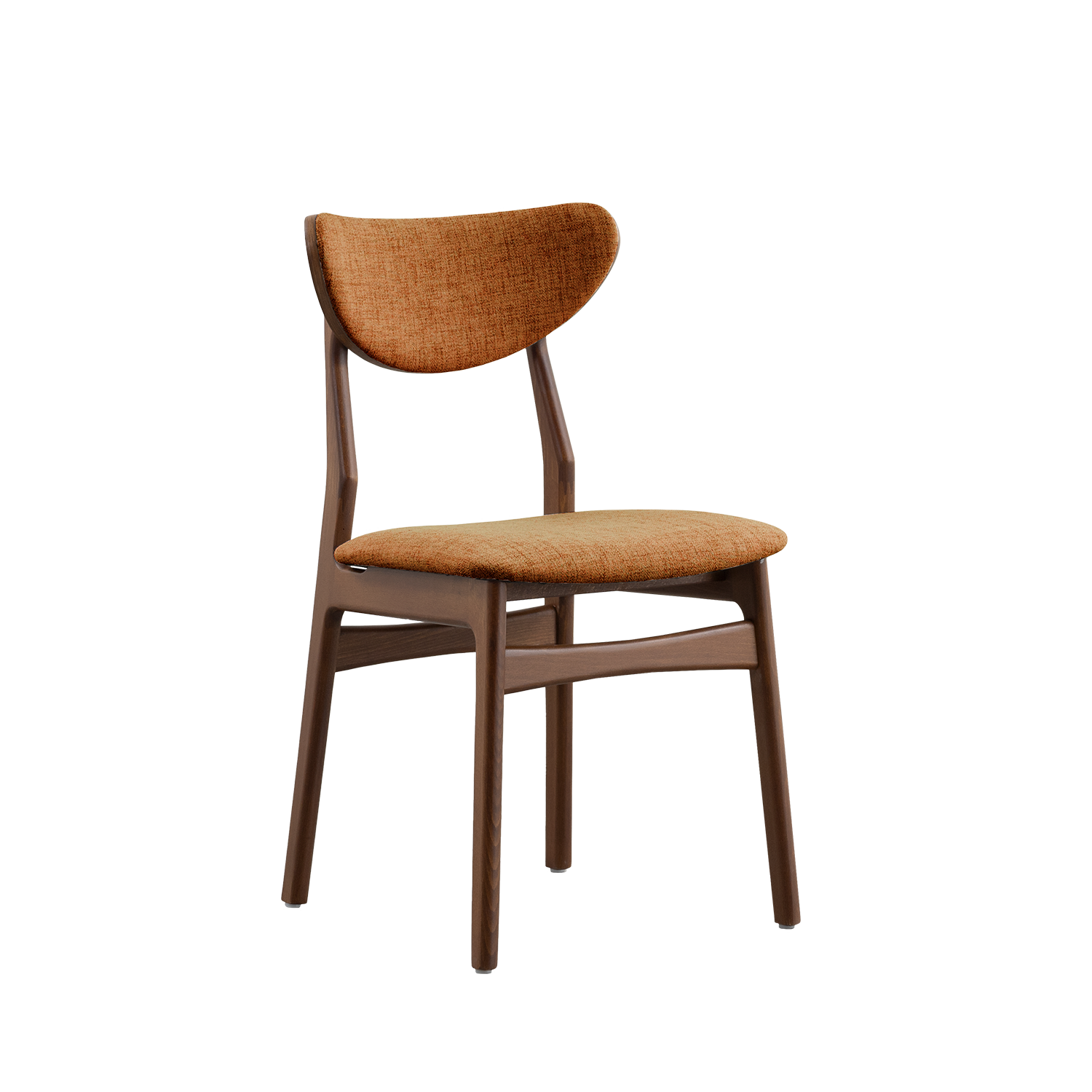 Dining room chair Enni has a nice simple base and a comfortable upholstered seat and back. The visible wooden edge in the backrest gives the chair a layered touch. The upholstered seat looks warm and inviting. You can dine for hours on the Enni!