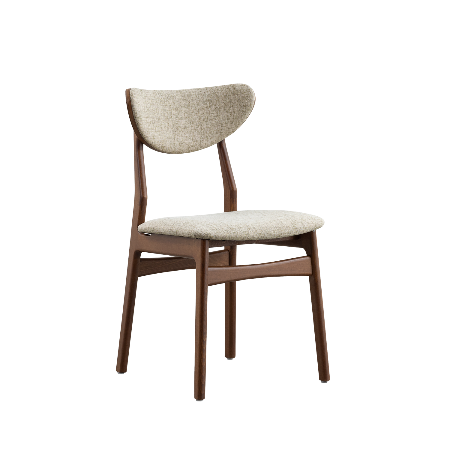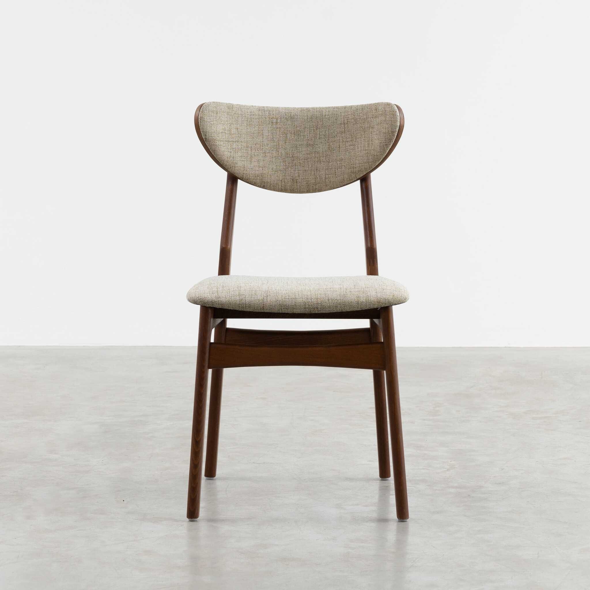 Dining room chair Enni has a nice simple base and a comfortable upholstered seat and back. The visible wooden edge in the backrest gives the chair a layered touch. The upholstered seat looks warm and inviting. You can dine for hours on the Enni!