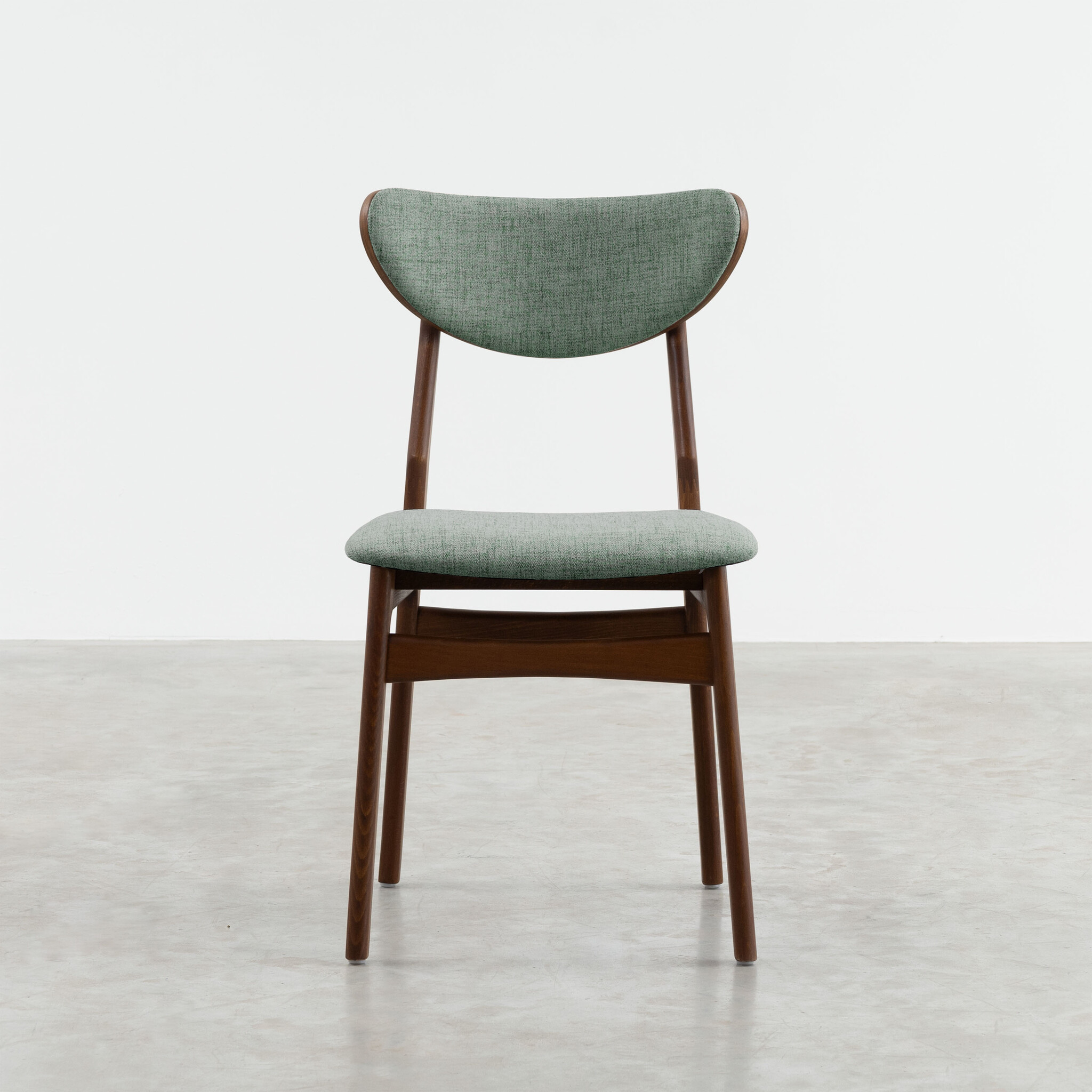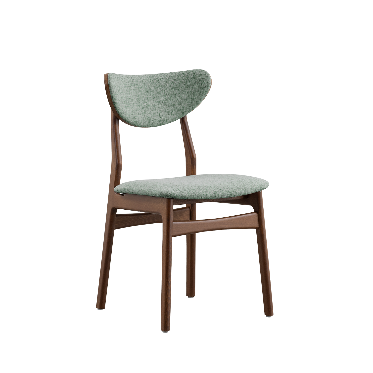 Dining room chair Enni has a nice simple base and a comfortable upholstered seat and back. The visible wooden edge in the backrest gives the chair a layered touch. The upholstered seat looks warm and inviting. You can dine for hours on the Enni!