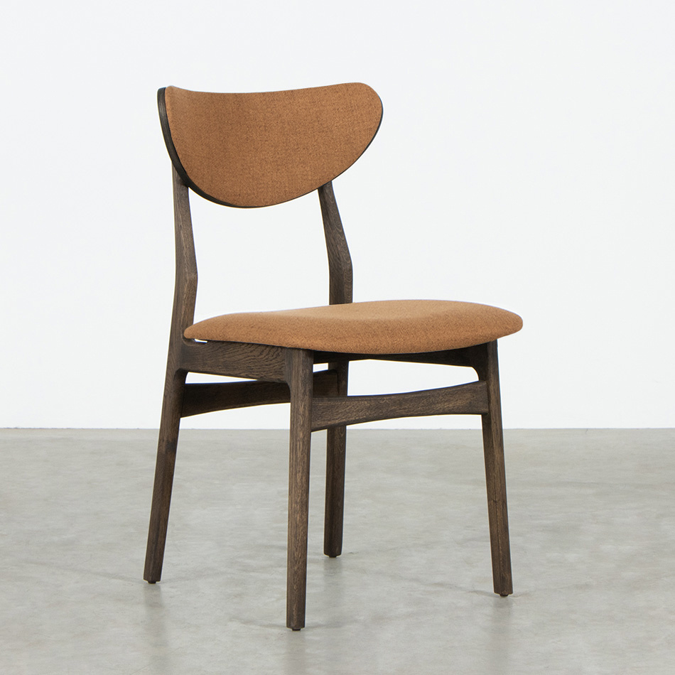 Dining room chair Enni has a nice simple base and a comfortable upholstered seat and back. The visible wooden edge in the backrest gives the chair a layered touch. The upholstered seat looks warm and inviting. You can dine for hours on the Enni!