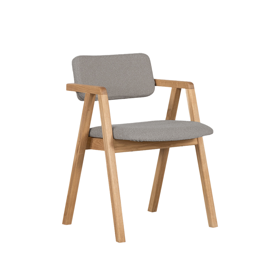 Enya's backrest almost seems like it could float away, but is simply firmly anchored to continuous armrests. This dining chair comes standard in oiled oak and is also available in smoked oiled, mocca oiled, and whitewashed oiled oak. Enya has an upholstered seat and backrest, available in different fabric types and colours.