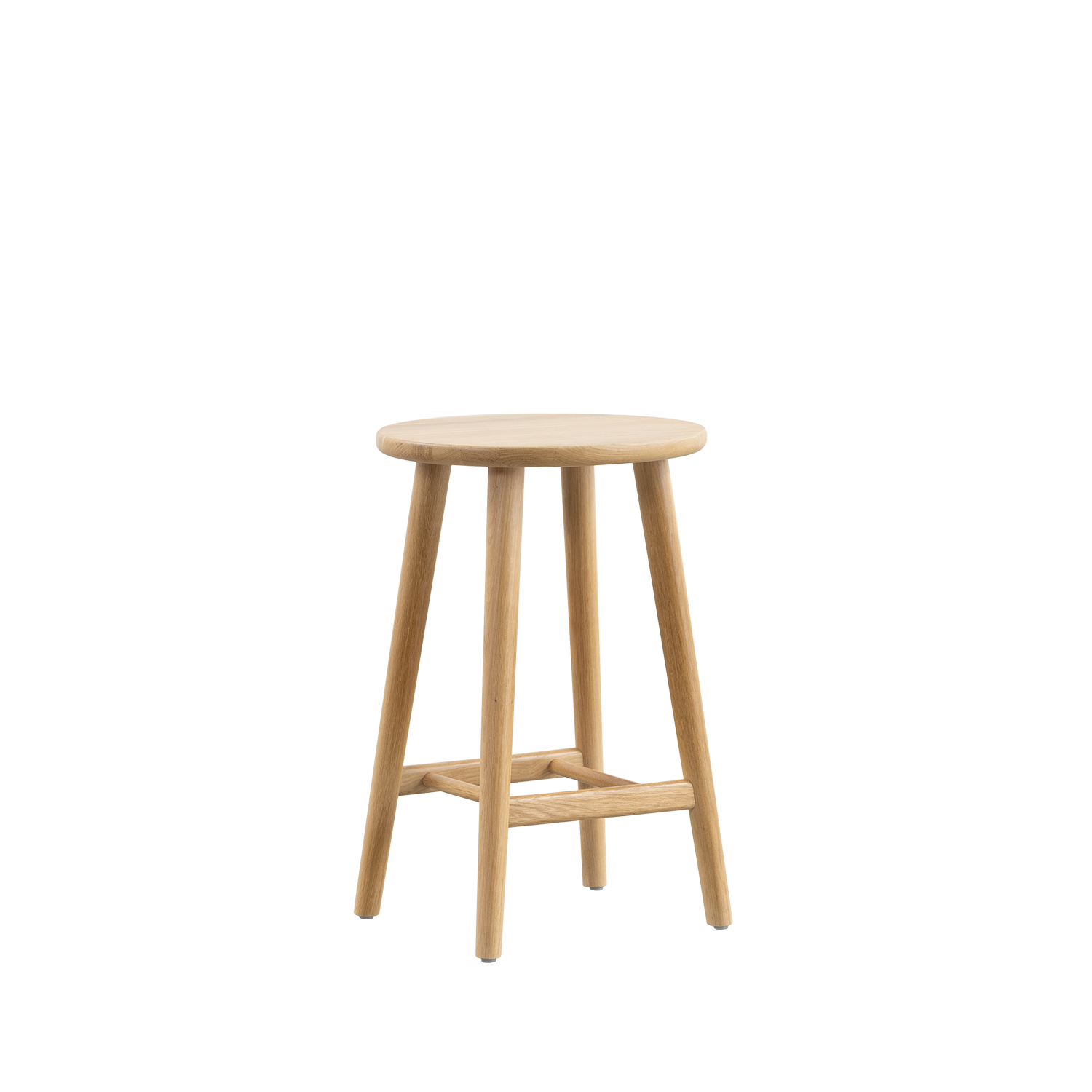 This sleek design counter bar stool is made of solid oak. The stool has a matte lacquered finish. Sturdy and with a height of 66 cm, ideal for a kitchen island. For the bar or standing table there is the Fjerre Bar Stool, with a seat height of 75 cm. The slightly oval seat has dimensions of 40x45 cm.