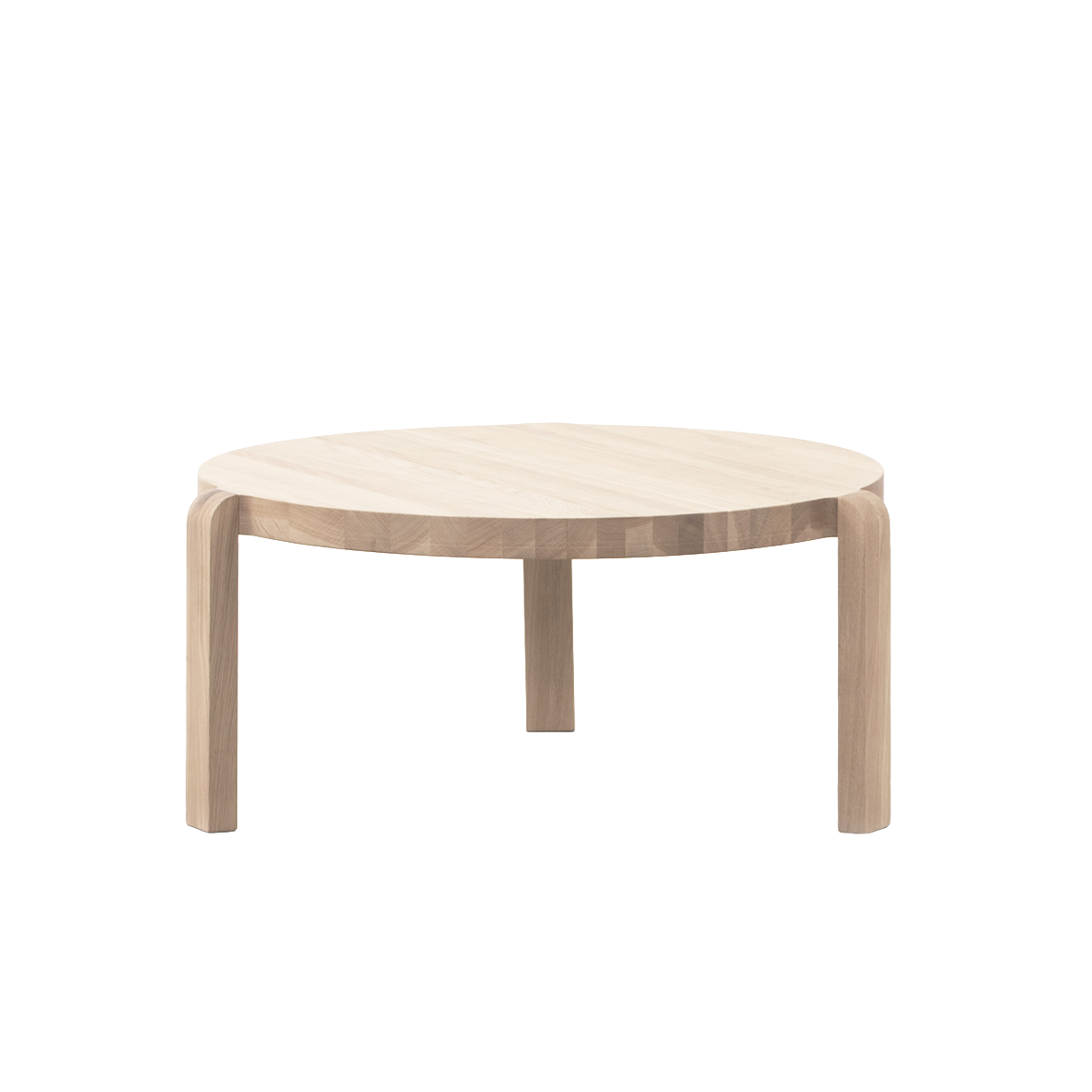 Coffee table Fraek stands out with its calm, clean shape and blends easily into different interiors. The design has a Scandinavian look and combines solid wood with soft, rounded details. The three curved legs appear to flow naturally from the tabletop, giving the table a friendly and balanced appearance.