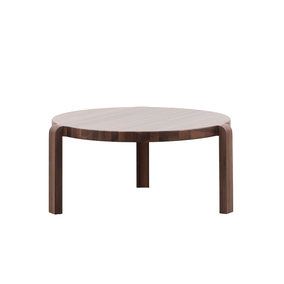 Made from solid walnut, Fraek feels sturdy and refined. With a diameter of 70 cm, the table offers enough space for books, glasses, and accessories while keeping a light and airy look. Fraek is available in various wood types.