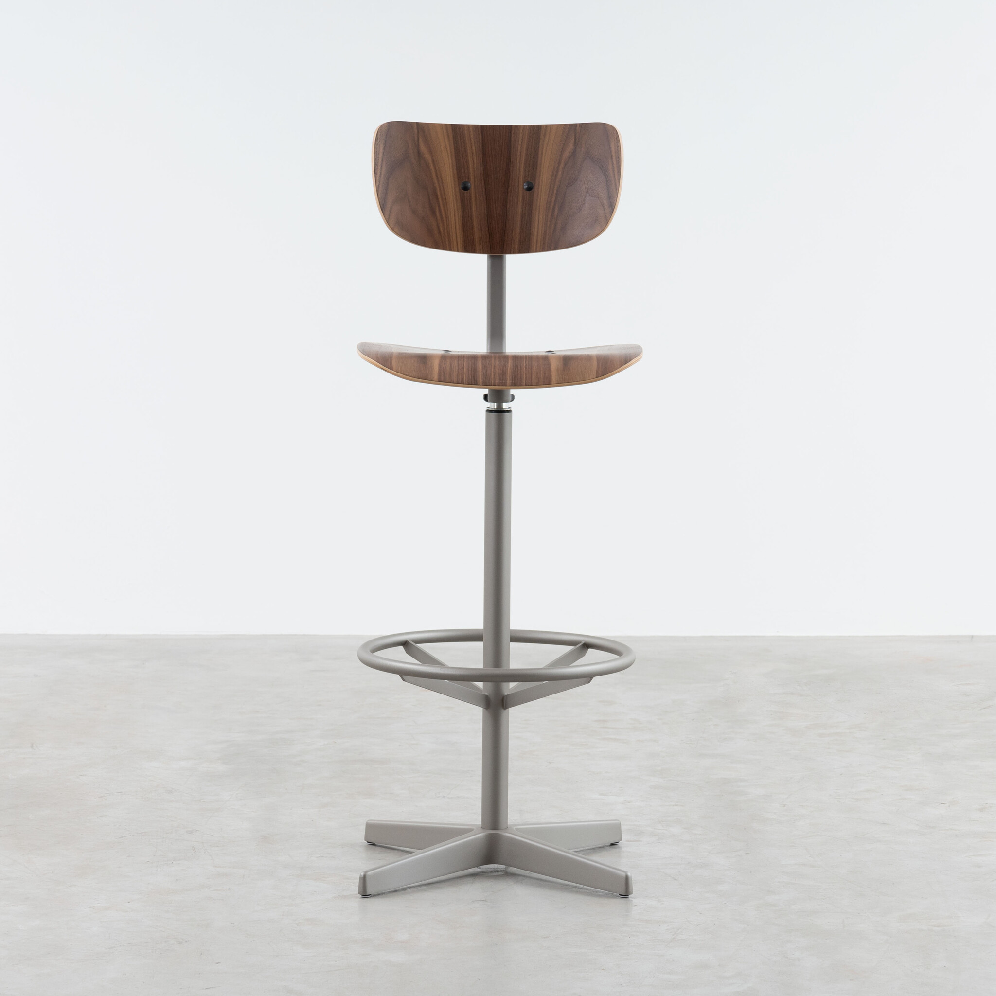 The Jops bar chair combines simplicity and functionality in a stylish design suitable for various applications. With a seat and backrest made of bent wood, this chair offers optimal comfort, ideal for extended use. The seat and backrest are available in high-quality real oak or walnut veneer, giving the chair a natural and warm appearance.