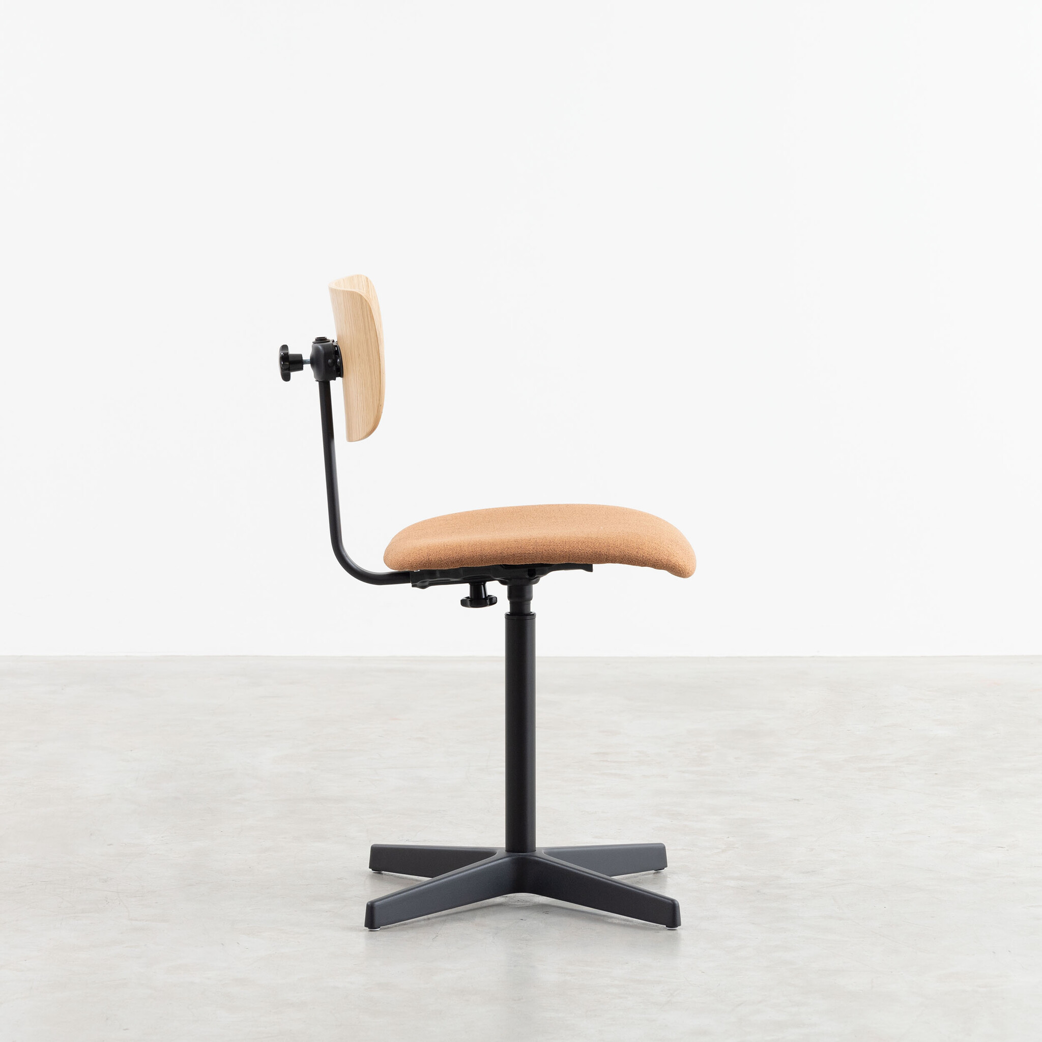 The sturdy metal base, available in 4 powder-coated colors, ensures stability and durability, while the swivel design and adjustable height provide flexibility and ease of use. The versatile Jops work chair can easily be used as an office chair in a professional environment, as a dining chair at home, or as a comfortable seat in restaurants and canteens.