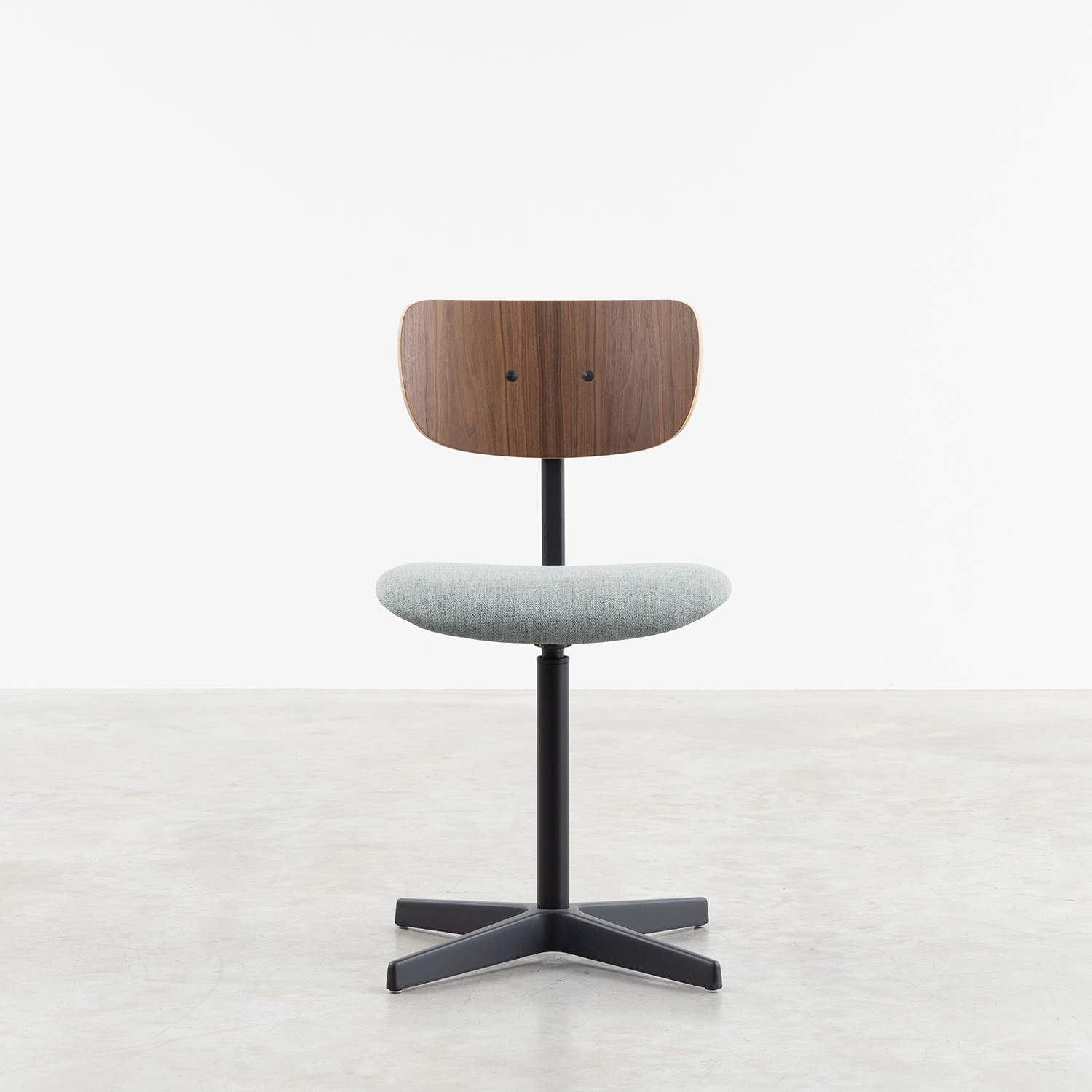 The Jops work chair combines simplicity and functionality in a stylish design suitable for various applications. With a seat and backrest made of bent wood, this chair offers optimal comfort, ideal for extended use. The seat and backrest are available in high-quality real oak or walnut veneer, giving the chair a natural and warm appearance.