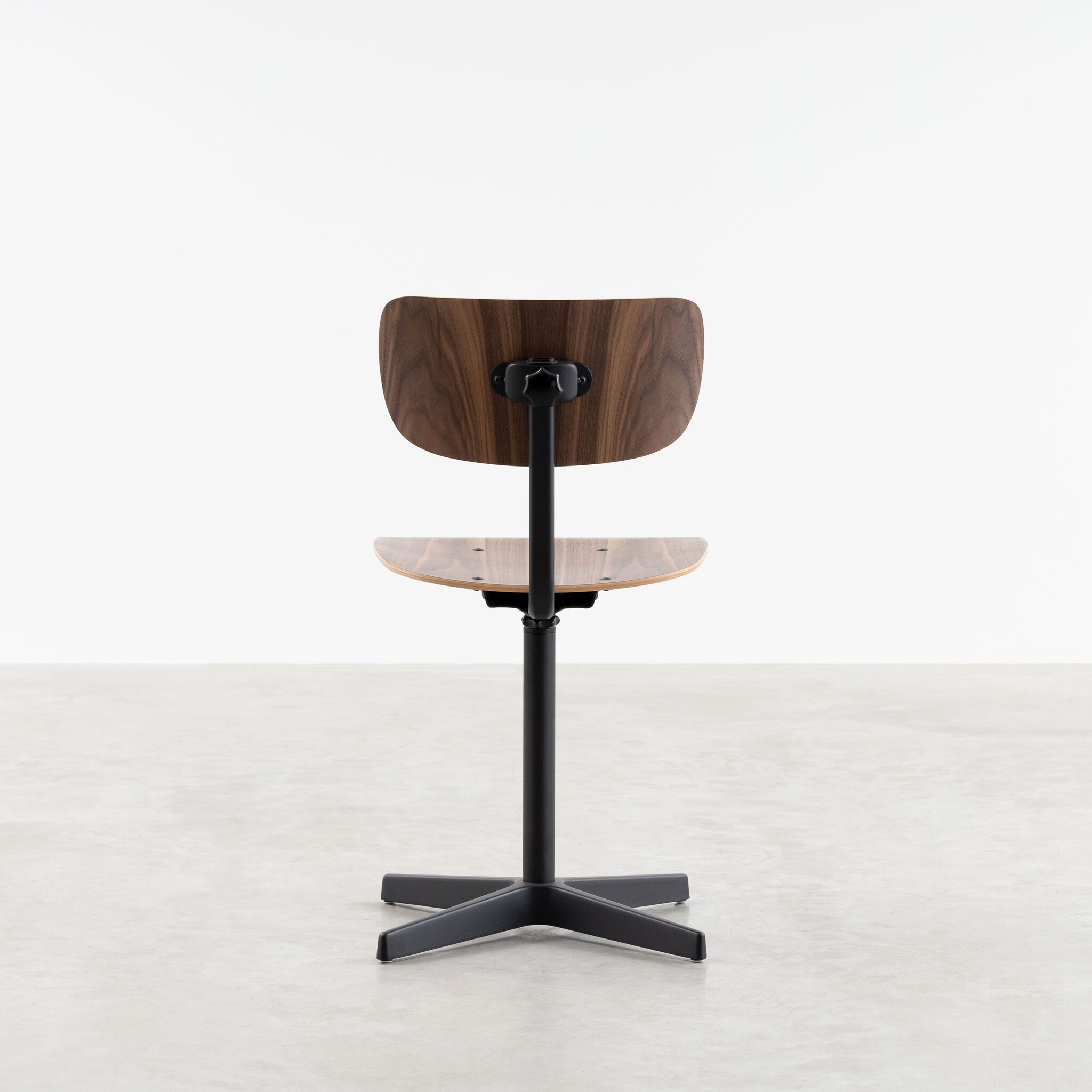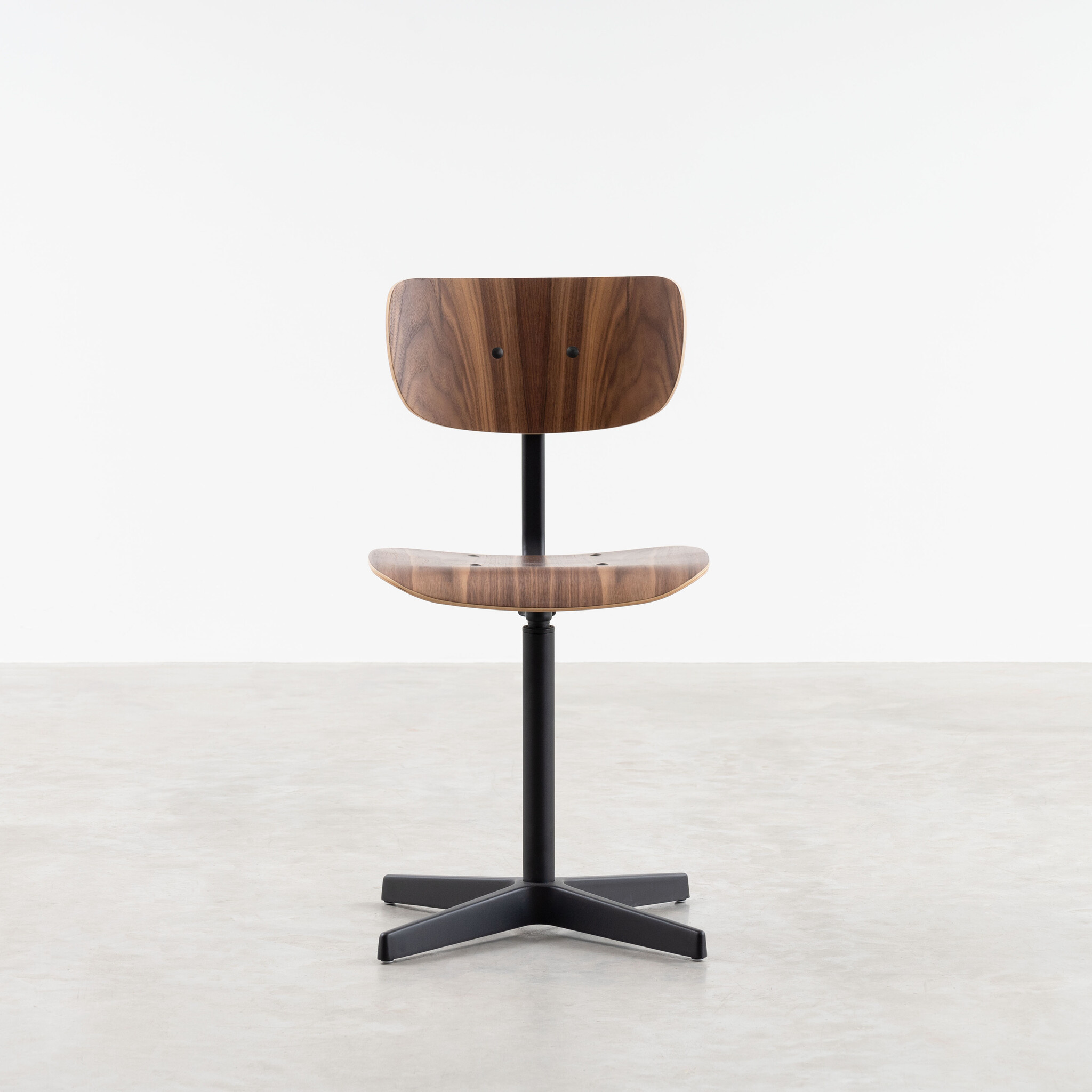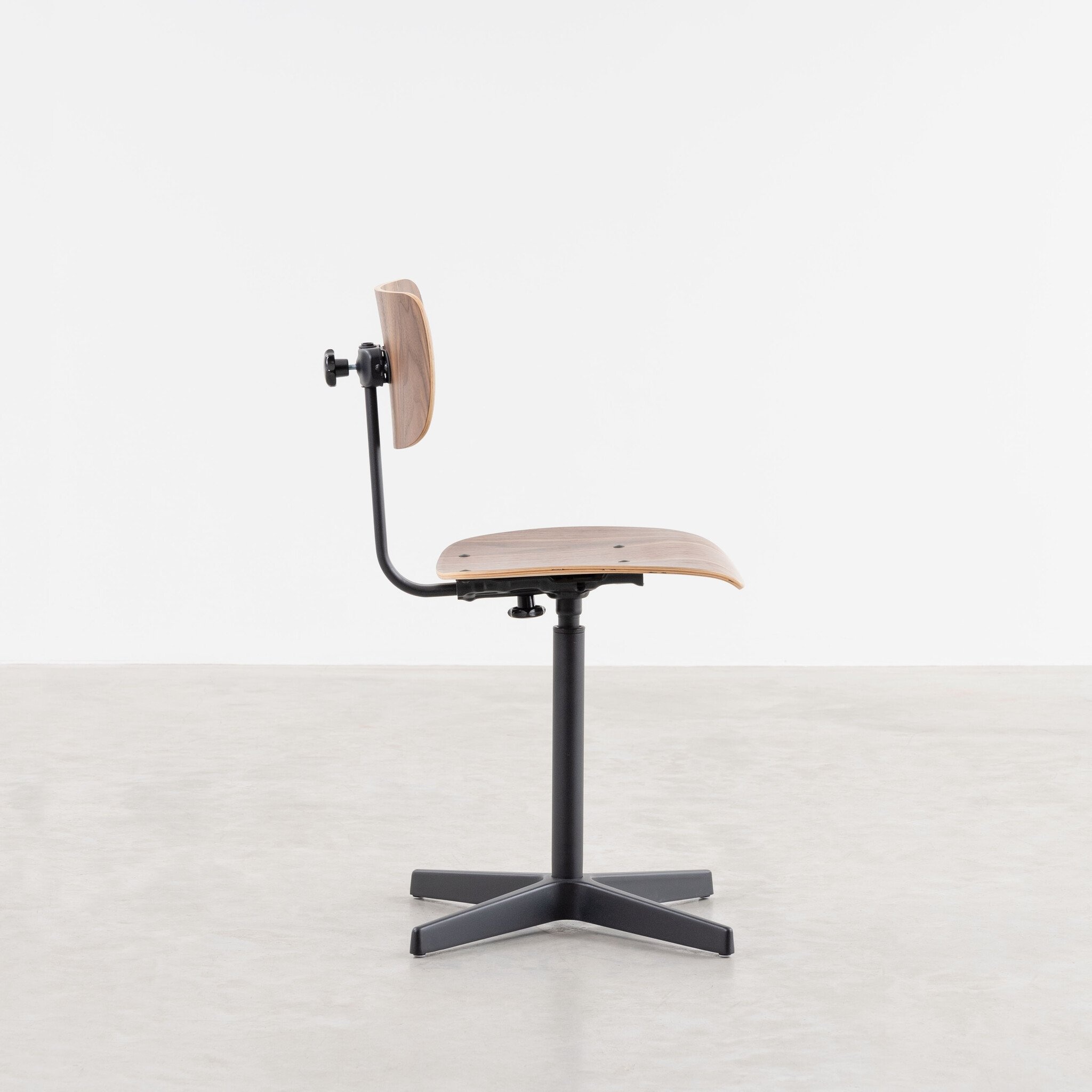 The Jops work chair combines simplicity and functionality in a stylish design suitable for various applications. With a seat and backrest made of bent wood, this chair offers optimal comfort, ideal for extended use. The seat and backrest are available in high-quality real oak or walnut veneer, giving the chair a natural and warm appearance.