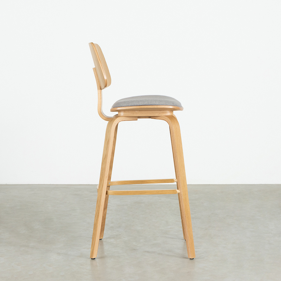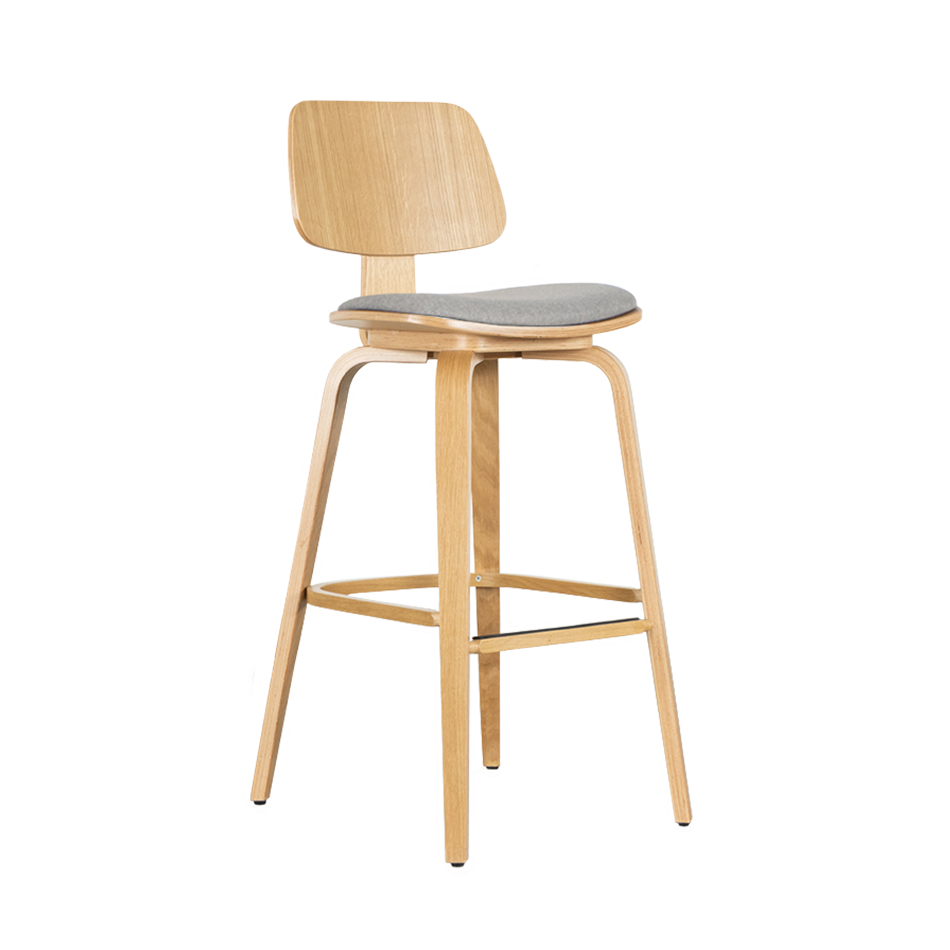 Wooden bar chair Junni has a familiar mid-century modern look that also fits well in interiors with Scandinavian accents. The optional upholstery gives a contemporary twist to the model.