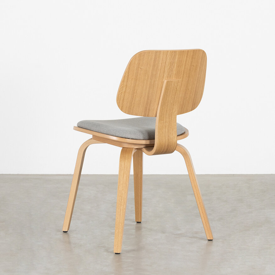 Chair Junni is made of plywood with oak veneer, with a matt lacquered finish. The material has the nice property that it is strong and can be bent beautifully. You can see the soft curves everywhere in Junni: in the backrest, seat and legs. With seating comfort as a result.