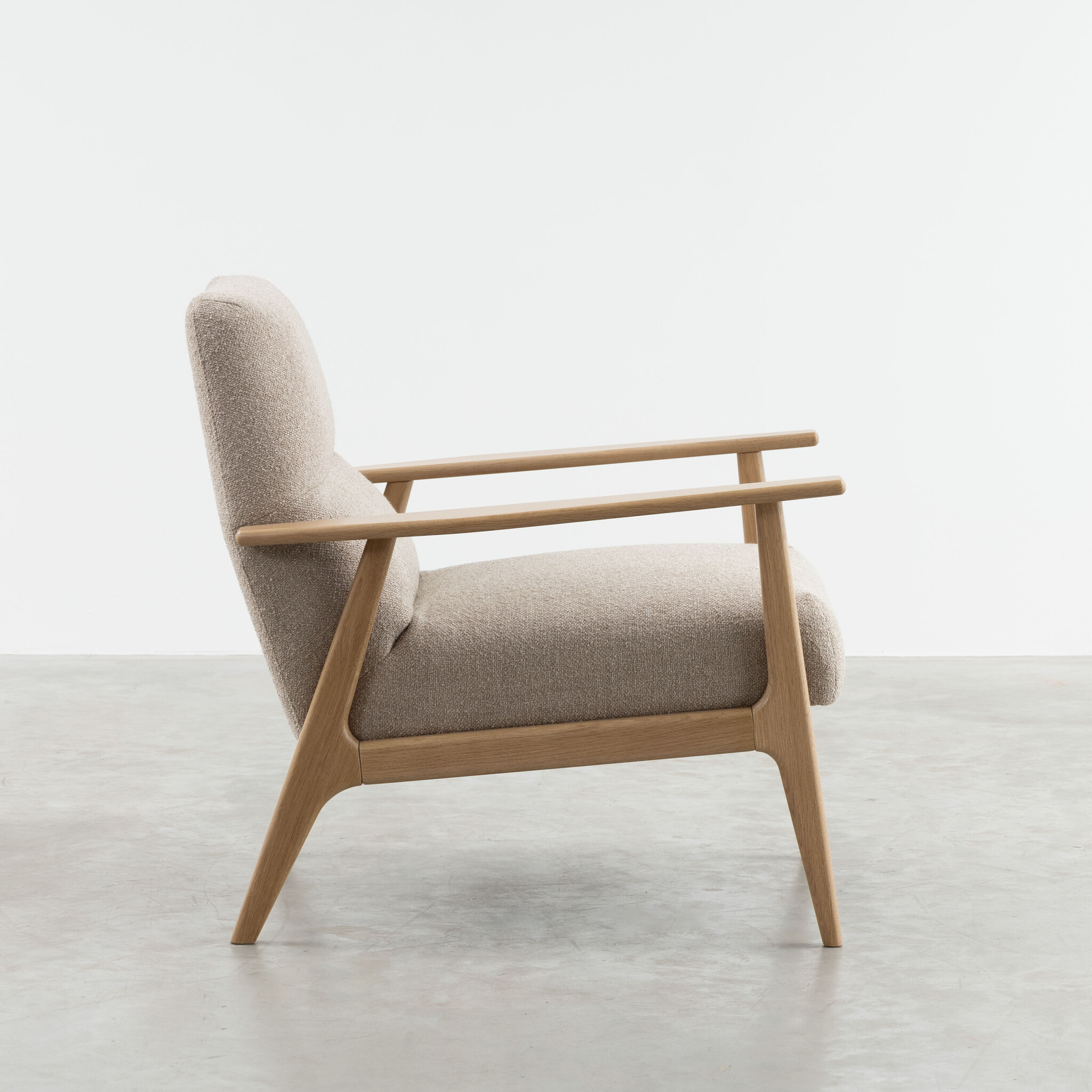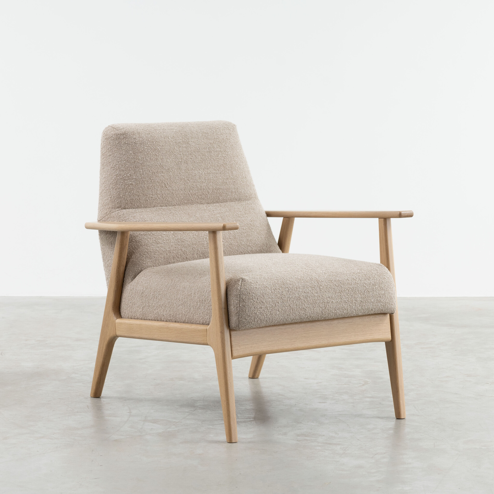 Sav & Økse's Karl lounge chair demonstrates why low armchairs are still relevant in contemporary interiors. A chair like this is a timeless, comfortable, and attractive addition to any living room, whether you live in a large or small space. The backrest of Karl tapers towards the top, beautifully complementing the subtle solid wood frame. This gives Karl an elegant appearance that offers plenty of space for a moment of relaxation.