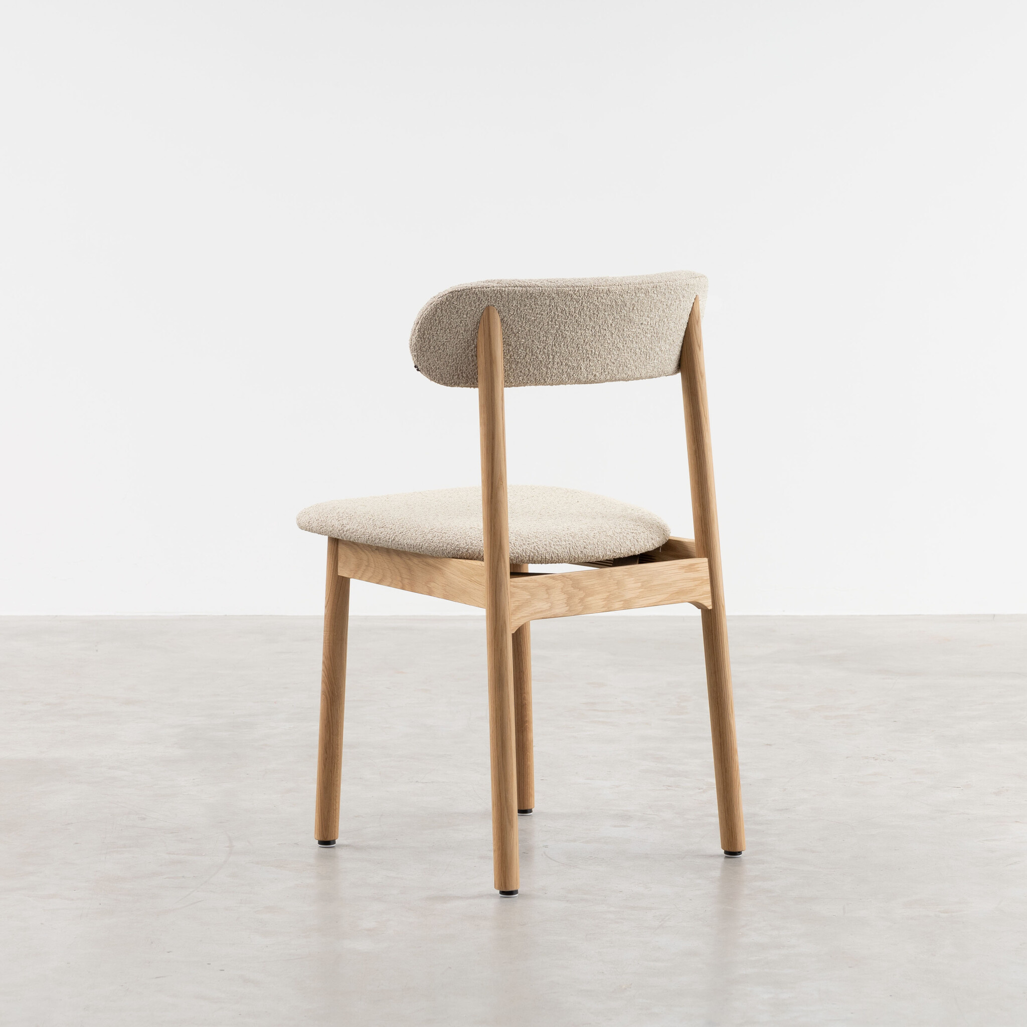 The Lumi dining room chair is available with an upholstered back and seat in different types and colours of fabric. You can view the fabrics in our showrooms and get advice from our employees.