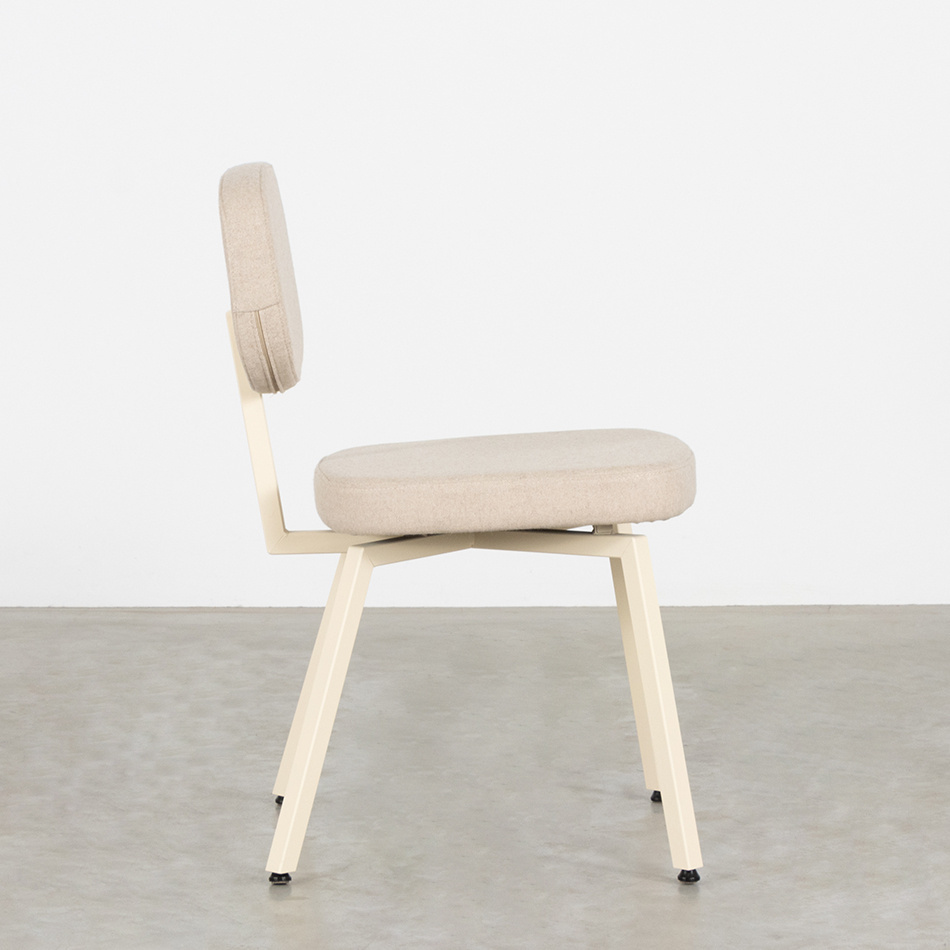Looking for an eye-catching chair? Our MK is happy to take on that task. The chair is stubborn and friendly. It lies in the fine available colours, but also in the round and straight shapes that the chair combines. The steel frame is laser cut and therefore has a nice, sleek finish. The MK is a sturdy, practical chair that puts a smile on your face.