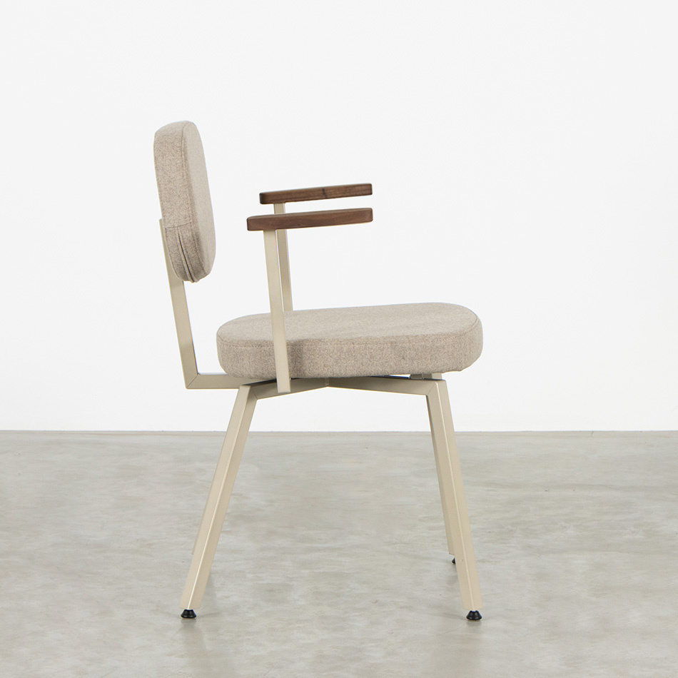 The MK is available with or without armrests made of oiled oak or walnut wood. There are various color schemes to choose from.