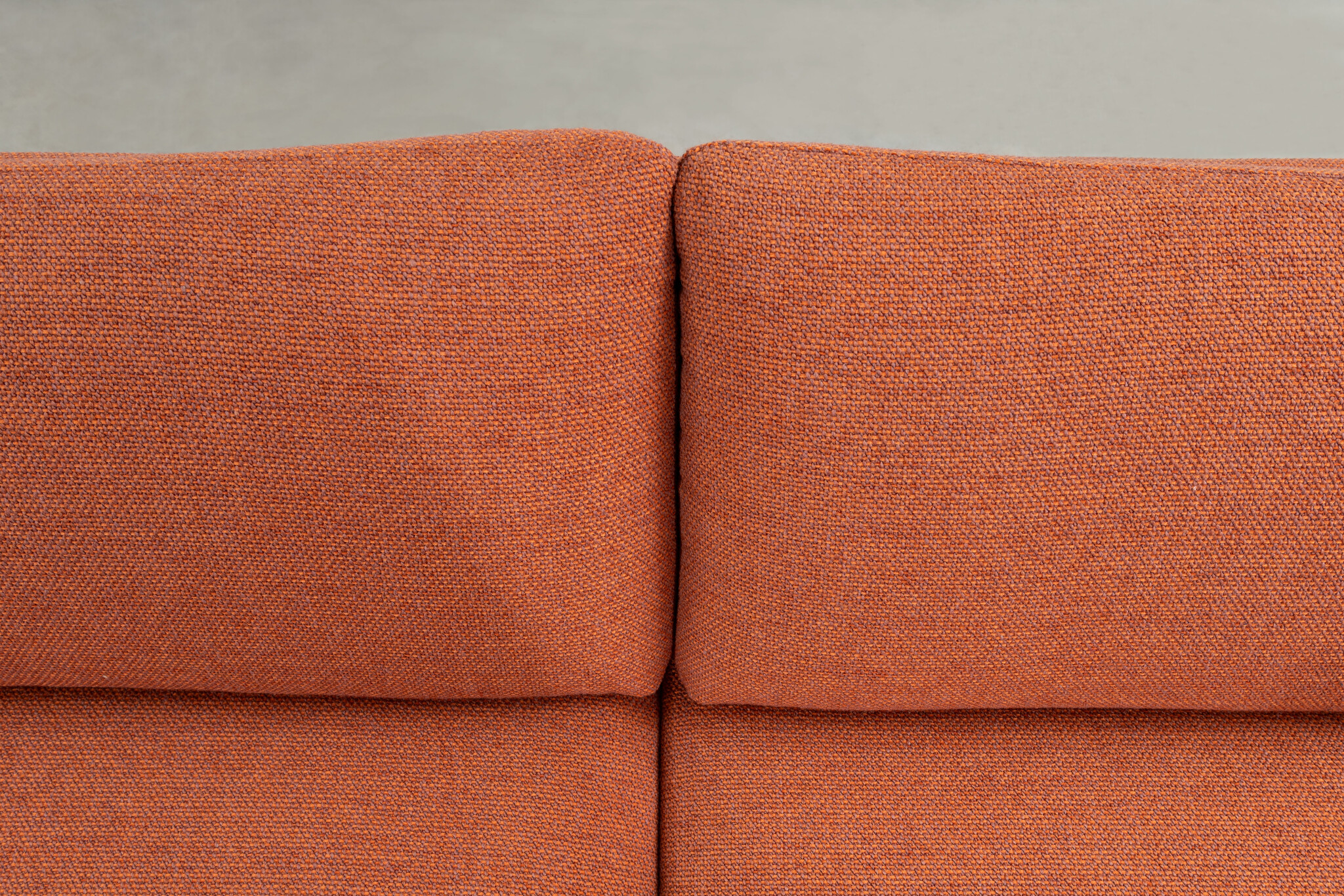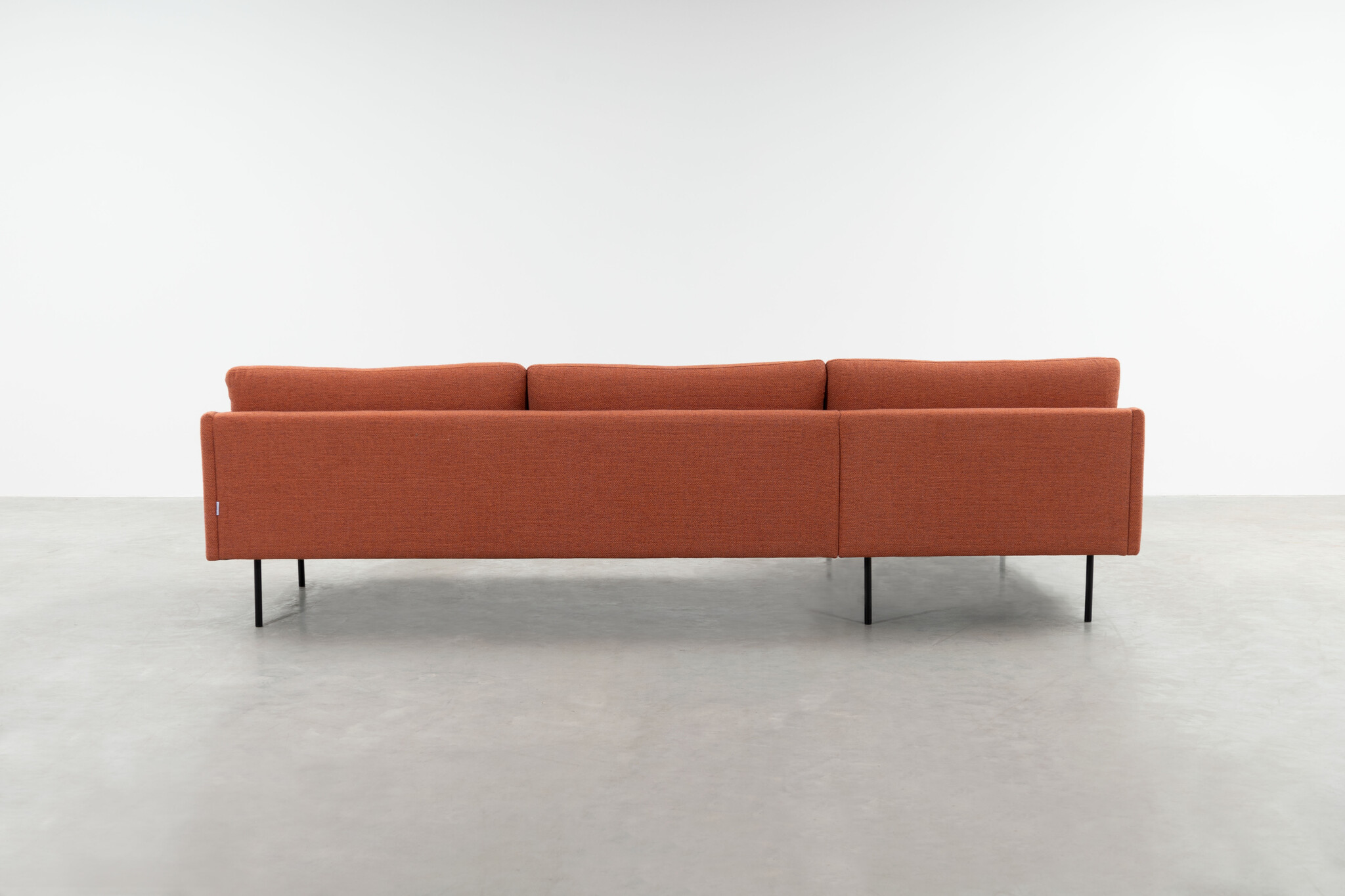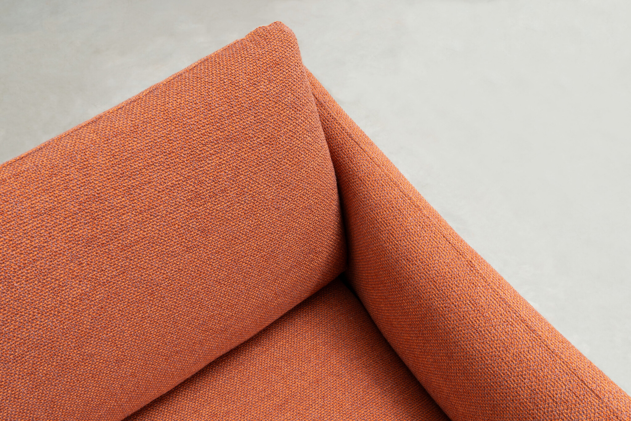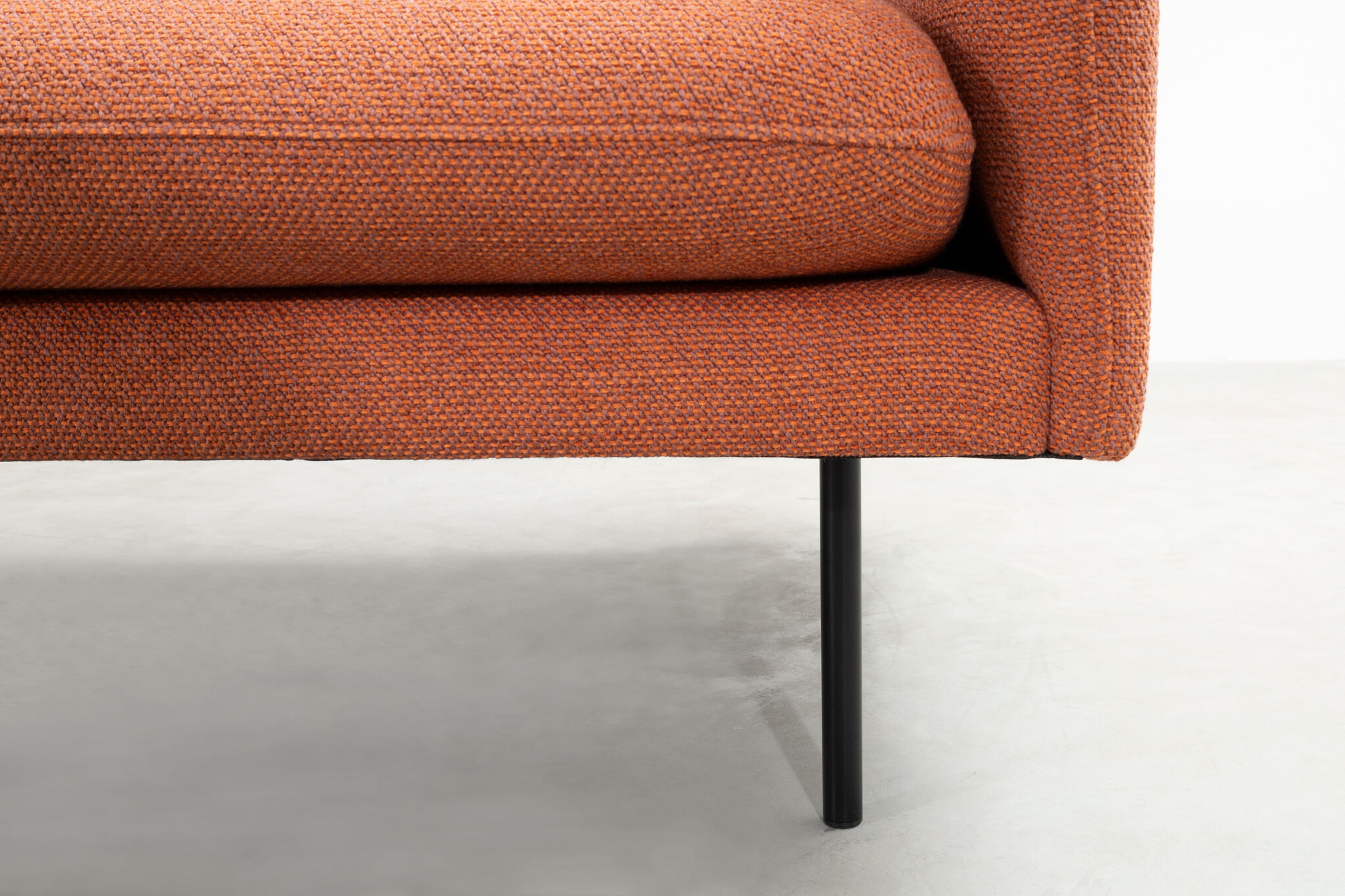 The legs of the Rølde are made of sturdy, black powder-coated steel. The loose cushions are attached to the frame with Velcro, so that they stay in place. At first glance, the sofa resembles the Jolin, but there are differences. For example, the armrests at the top form the curve of an arm and the cushions have regular, tight stitching.