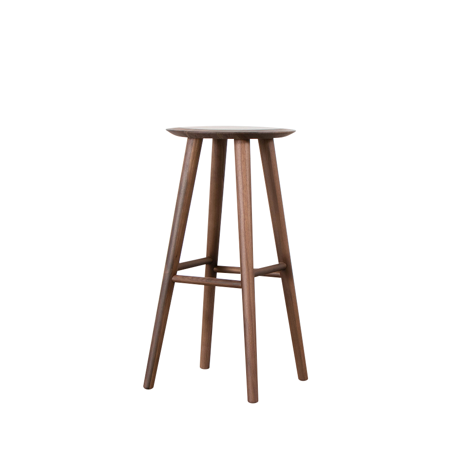 The Olger barstool can be described as modern Danish design. The barstool is characterized by its slender shape and special details. The legs are round in shape and placed diagonally under the seat. Another nice detail is the thin round seat with a diameter of 40 centimeters, with rounded corners. Special to see and beautifully executed. This slender design barstool is made of solid wood. Sturdy and, thanks to the height of 80 cm, ideal for a bar or standing table. For a kitchen island there is the Olger Counter Barstool.