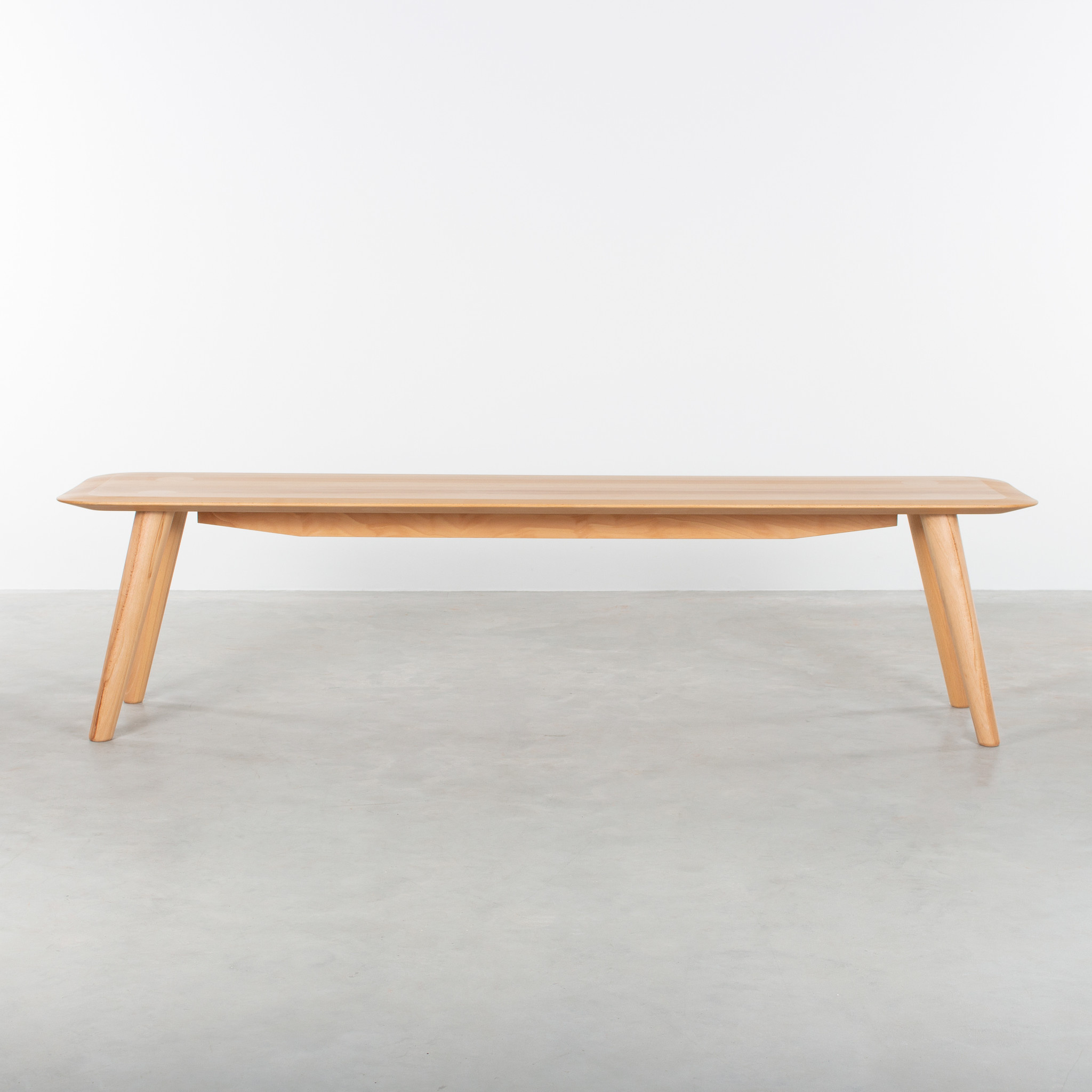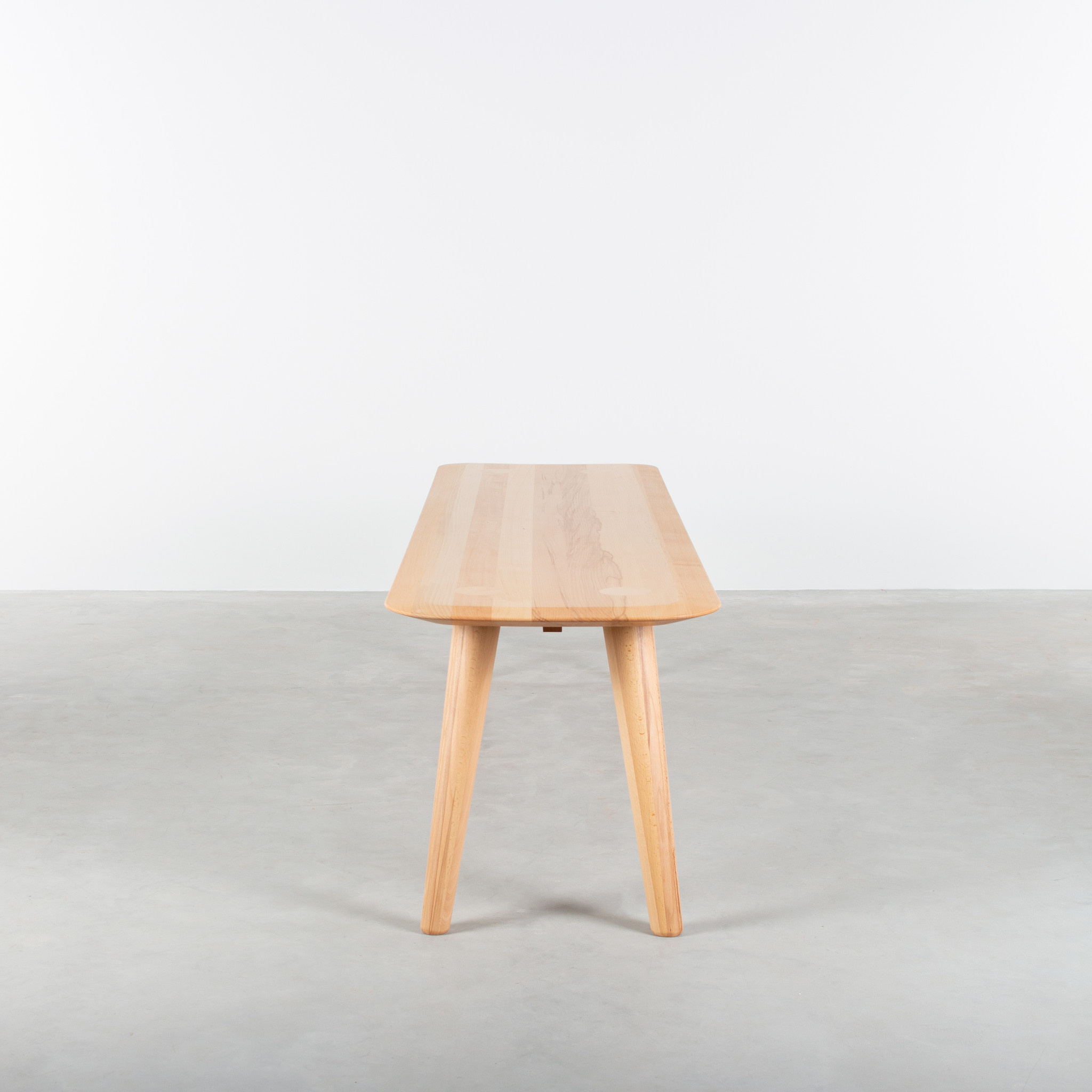 The Olger dining table bench is made of solid wood and has a slender shape and round corners. The dining table bench has the same design as the Olger dining table. Together they form a perfect duo. The most striking detail are the legs that extend into the top. The legs protrude, as it were, through the top and, just like the top, have a nice flat finish. Special to see and beautifully executed.