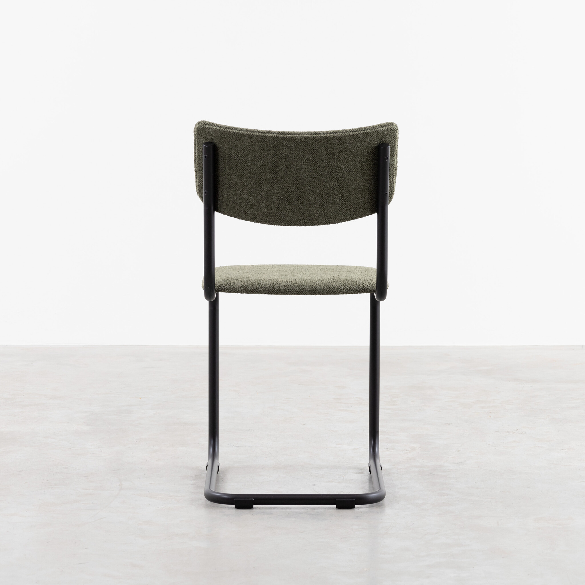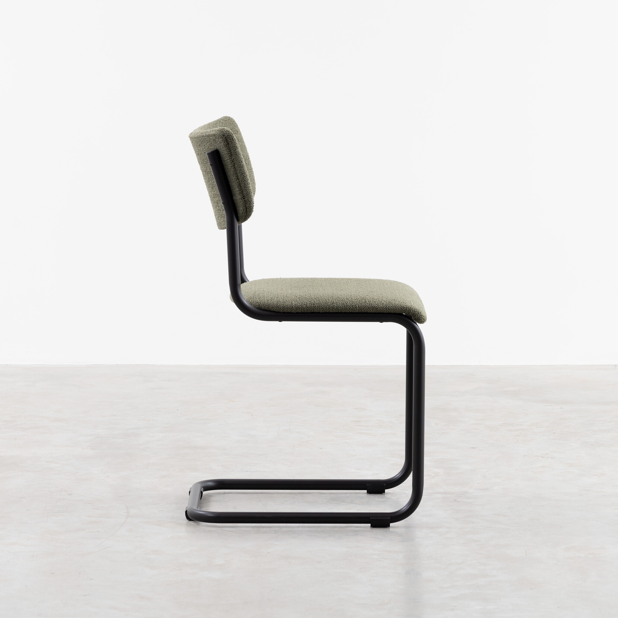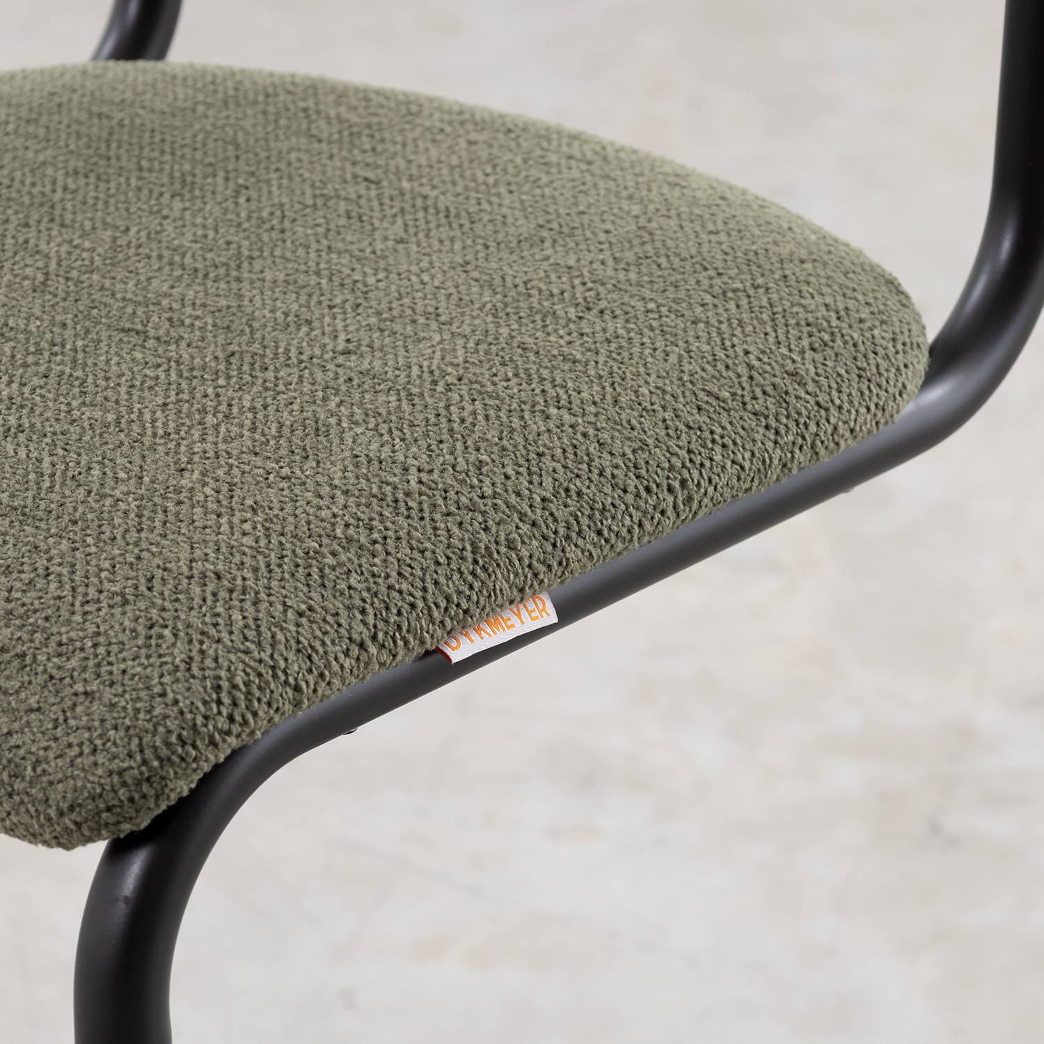 The Dykmeyer De Purmer is a tubular frame cantilever chair. Inspired by the Avant Garde chairs from the 1930s. The chair has a modern industrial look. With a good seat, it is an ideal dining room chair. The tubular frame has right angles and runs parallel to each other from the carriage to the backrest. Due to the kink in the tubular frame, the backrest is slightly tilted. This provides the right support for a delicious meal. The Bakelite armrests ensure that your arms also receive support. With its solid quality, the De Dykmeyer Purmer is suitable for catering, business and private use.