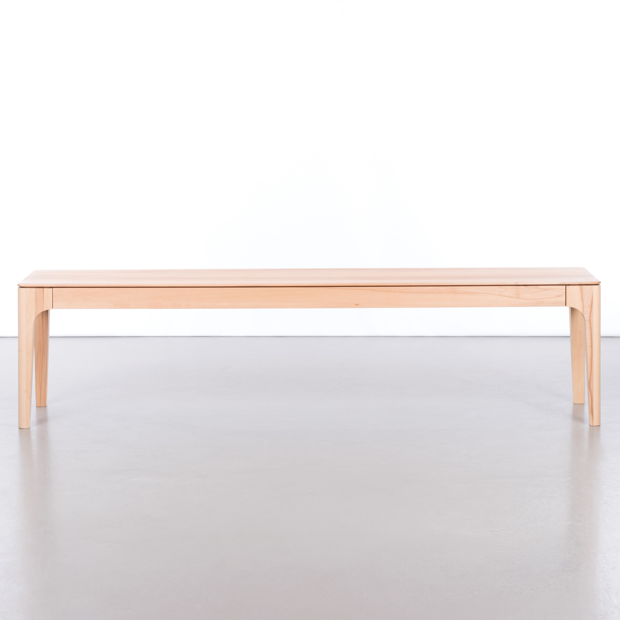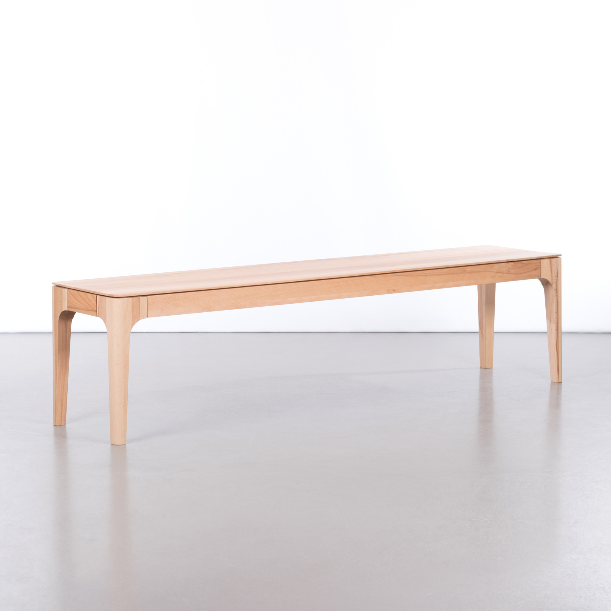 The Rikke dining table bench is a solid wood bench. A bench with a beautiful and functional design. The bench is available in different types of wood, finishes, colours Fenix and dimensions.