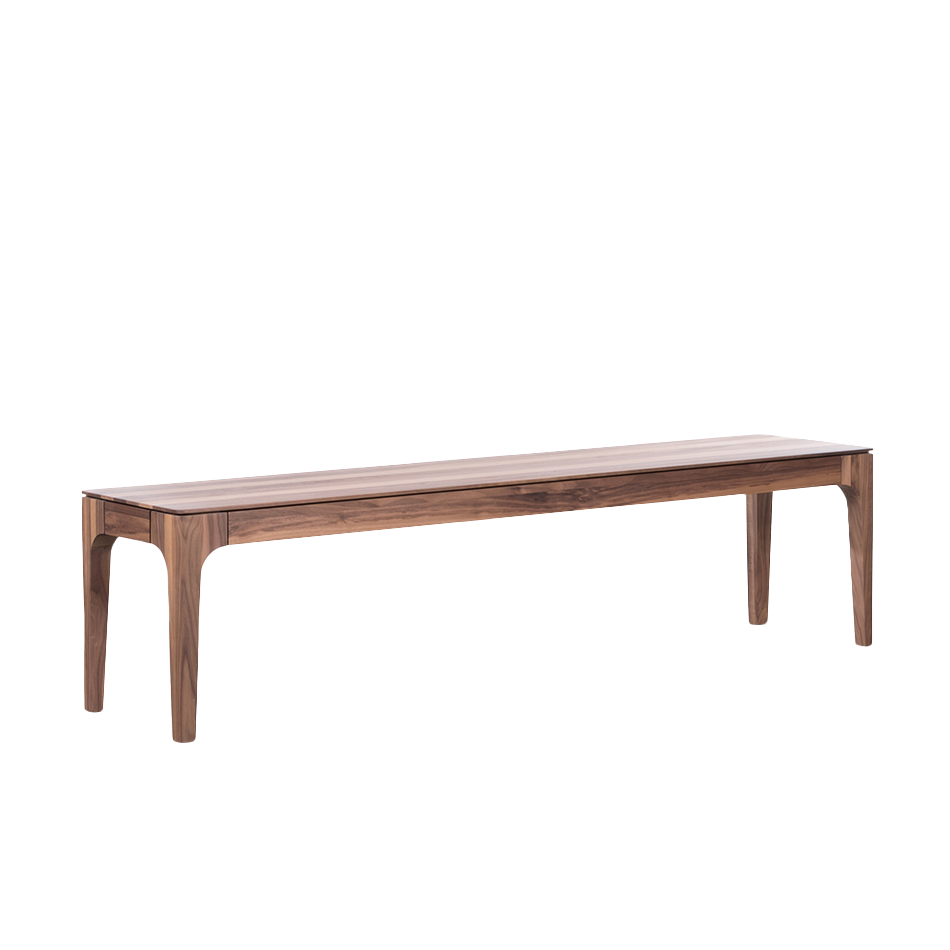 The Rikke dining table bench is a solid oak bench. A bench with a beautiful and functional design. The bench is available in different types of wood, finishes, colours Fenix and dimensions.