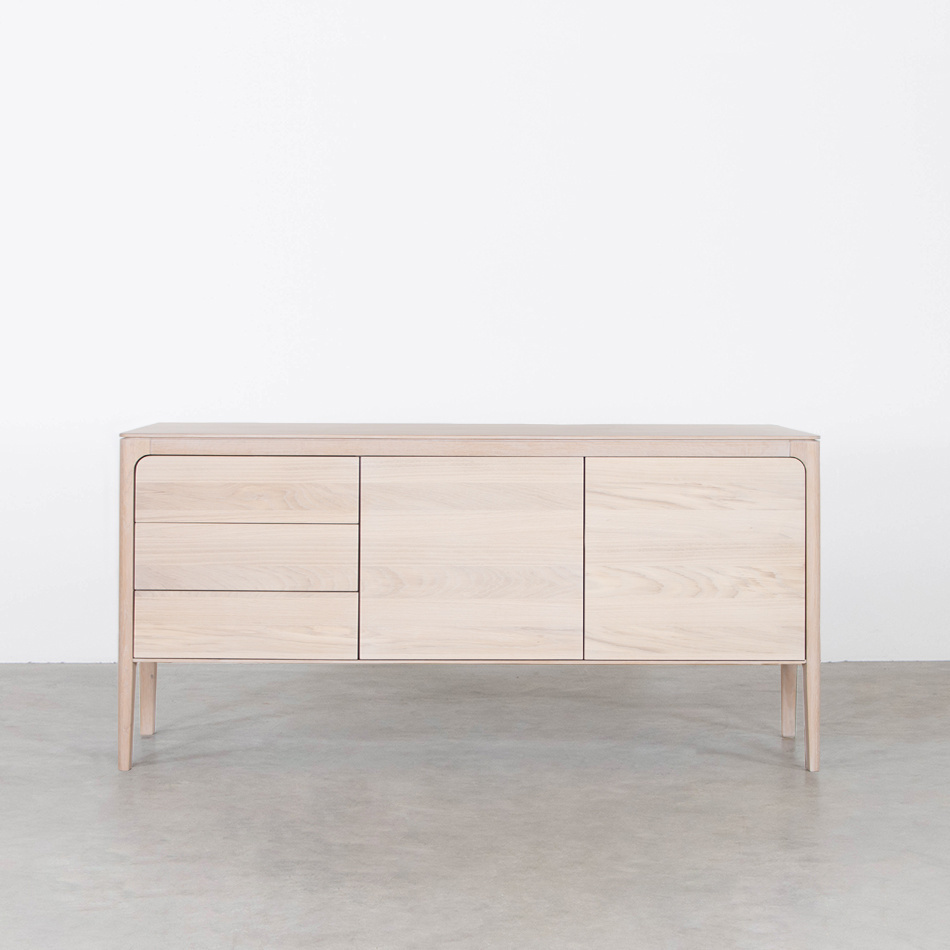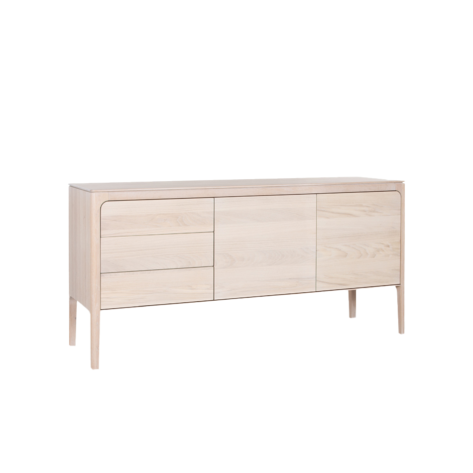 The Rikke sideboard is a wooden sideboard in Scandinavian style, where design and functionality go well together. This solid wooden sideboard has round shapes and a light appearance. The legs of the Rikke continue in one subtle flowing movement. With the Rikke sideboard you get a beautiful design sideboard at home. Functional and a real eye-catcher in your living space.