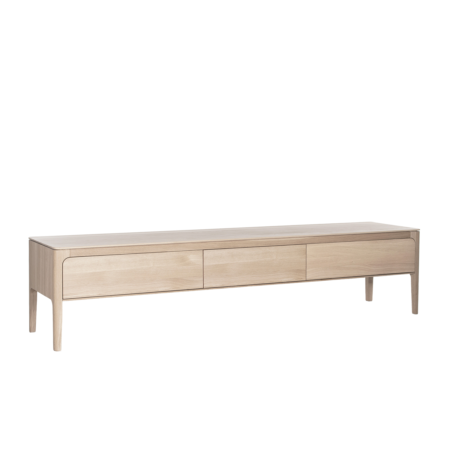 Are you looking for a special beech TV cabinet? The Rikke TV Cabinet is a solid wooden TV cabinet, with a Scandinavian design. This solid wooden furniture has round shapes and a light appearance. The legs continue in one subtle flowing movement.