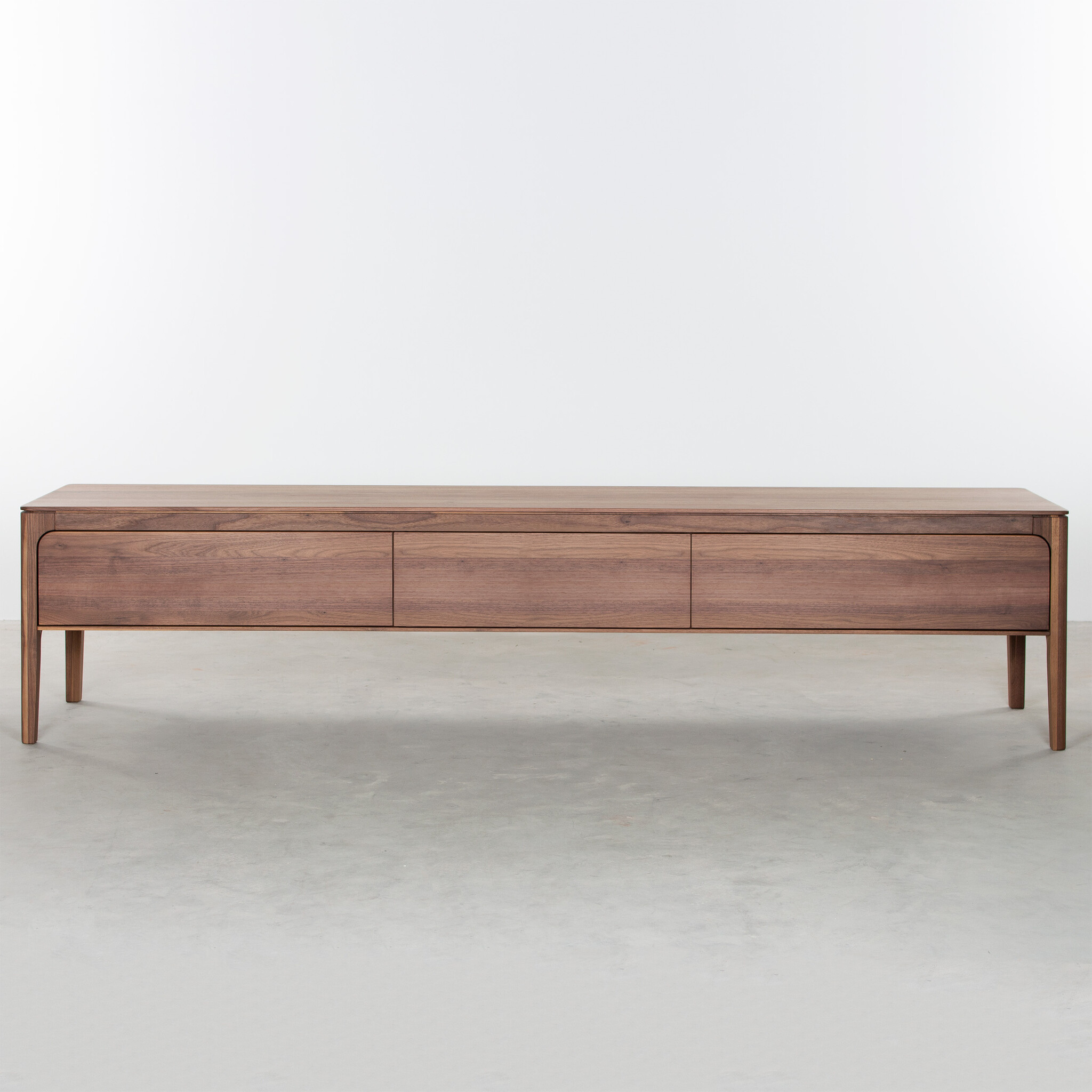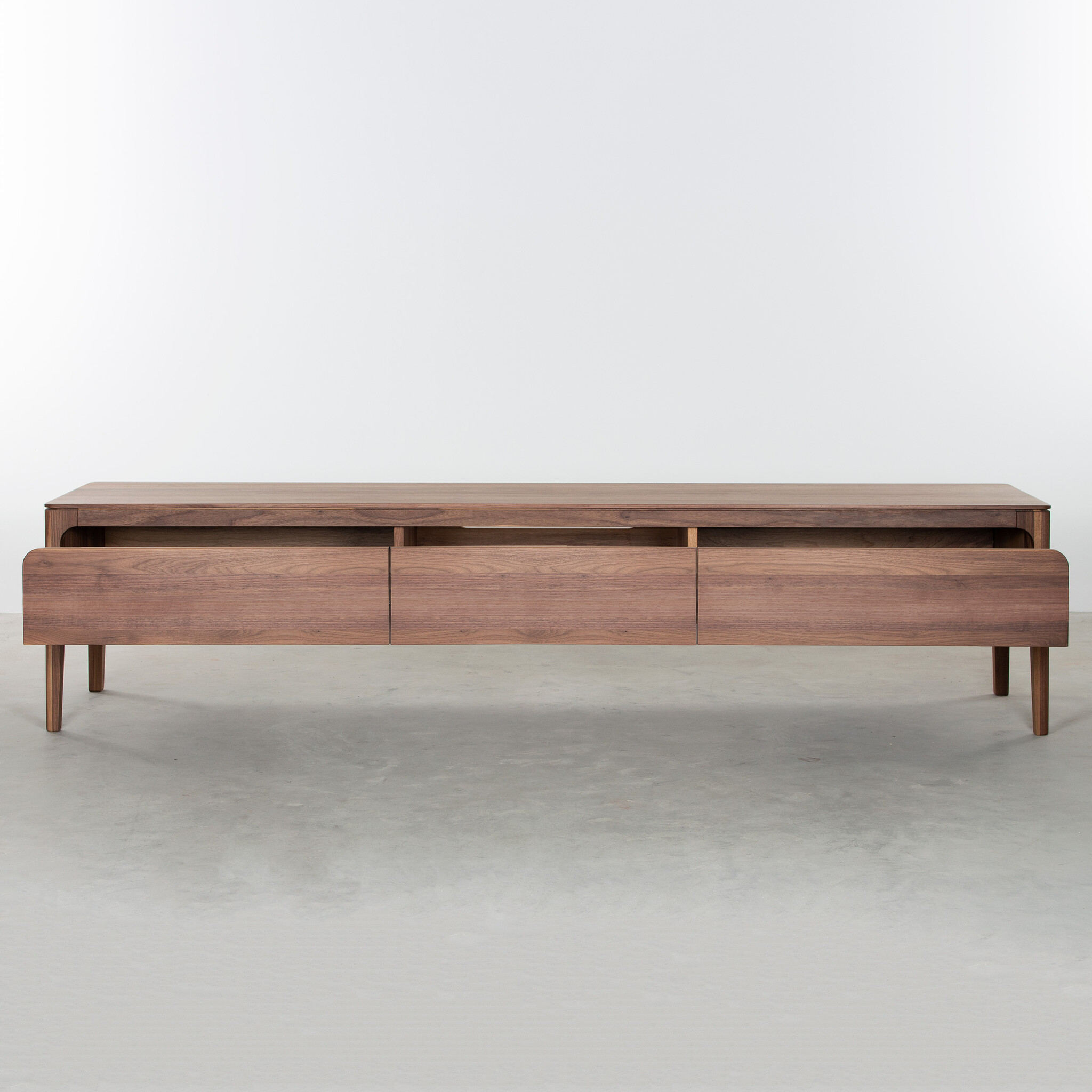 Are you looking for a special beech TV cabinet? The Rikke TV Cabinet is a solid wooden TV cabinet, with a Scandinavian design. This solid wooden furniture has round shapes and a light appearance. The legs continue in one subtle flowing movement.