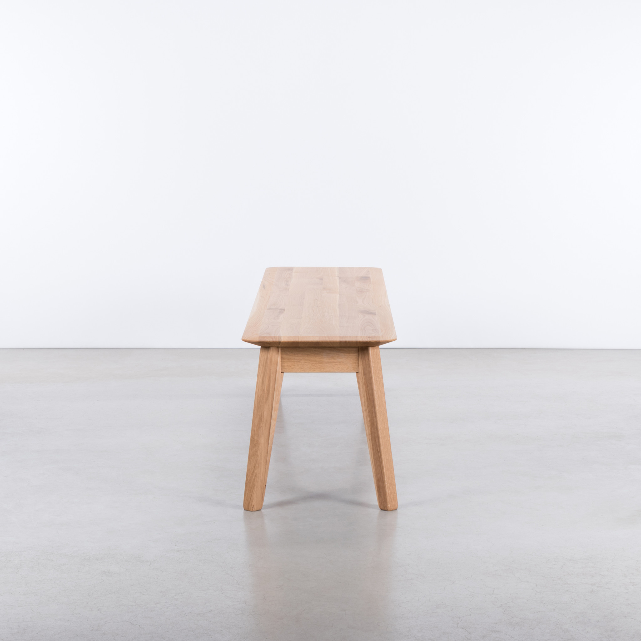 The Samt dining table bench is made of solid wood and has a slender shape and round corners. The dining table bench has the same design as the Samt dining table. Together they form a perfect duo. But this dining table bench can also be combined well with other tables.