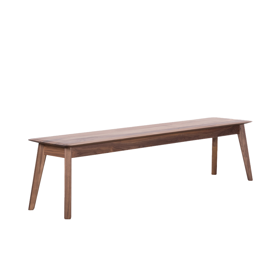 The Samt table and dining table bench have the same shapes. Round corners and angled legs. This creates a light and playful character. But it certainly doesn't affect the sturdiness. The Samt stands strong on its legs. The table bench has a smooth finish and has tapered edges.