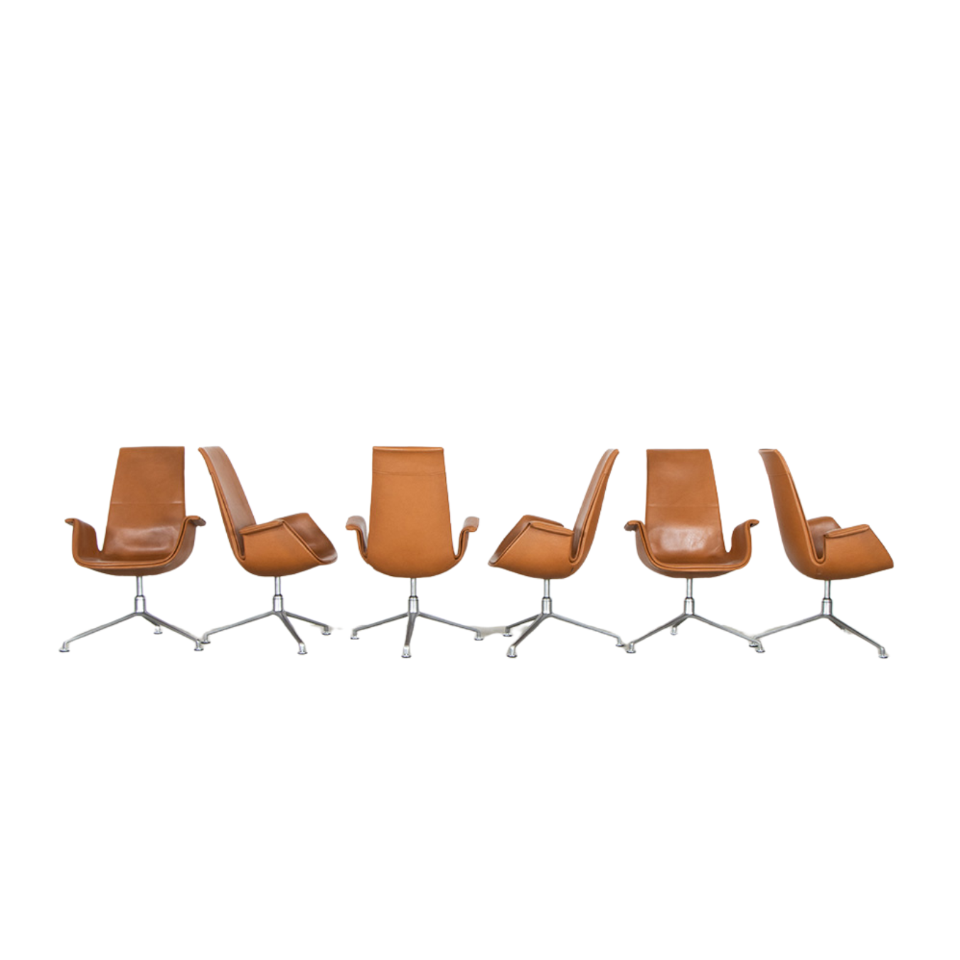 Product name: Set of 6 Fabricius and Kastholm FK Tulip Chairs Highback Cognac Leather Walter Knoll