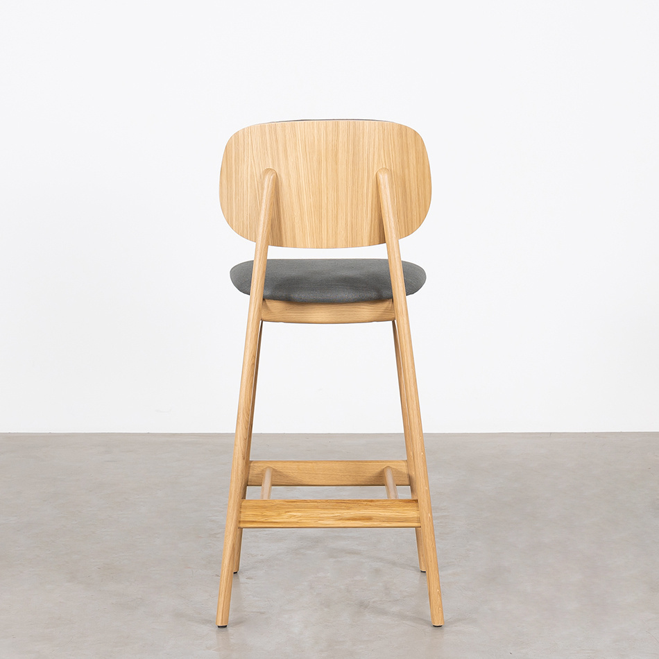 The Sinni counter bar chair with upholstered seat and back (seat height 69 cm) is a charming and timeless counter bar stool with a Scandinavian design. Like the other furniture from the Sav & Økse collection, the Sinni is designed from a practical and down-to-earth point of view. It is a counter bar chair with a friendly character and familiar appearance. The counter bar chair is made entirely of high-quality oak. The tapered legs support the curved seat and backrest. Without unnecessary details, this playful counter bar chair is beautiful to look at from every angle.