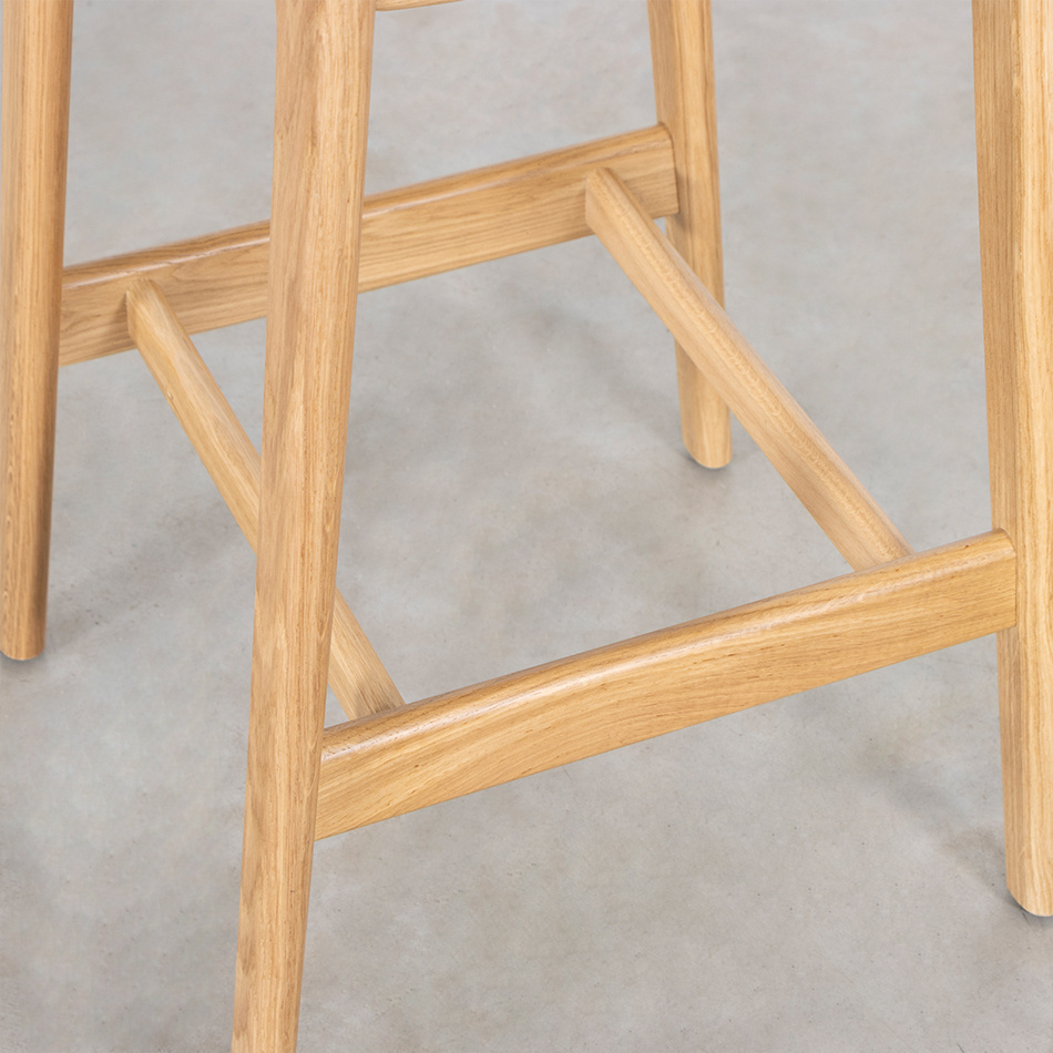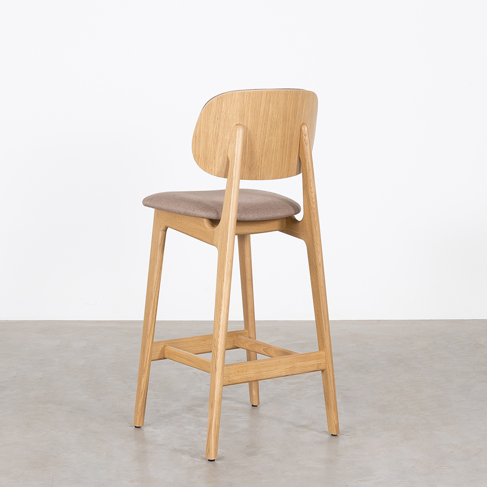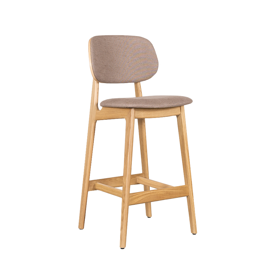 The Sinni counter bar chair with upholstered seat and back (seat height 69 cm) is a charming and timeless counter bar stool with a Scandinavian design. Like the other furniture from the Sav & Økse collection, the Sinni is designed from a practical and down-to-earth point of view. It is a counter bar chair with a friendly character and familiar appearance. The counter bar chair is made entirely of high-quality oak. The tapered legs support the curved seat and backrest. Without unnecessary details, this playful counter bar chair is beautiful to look at from every angle.