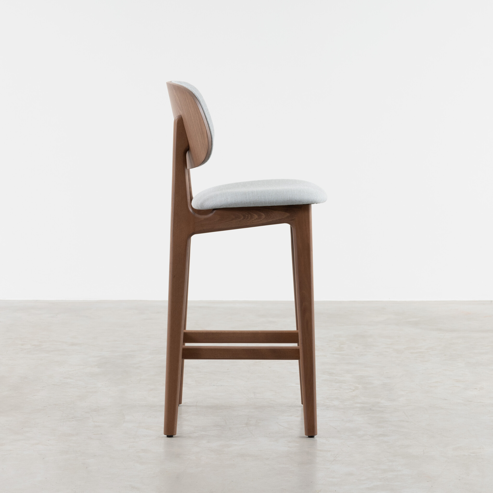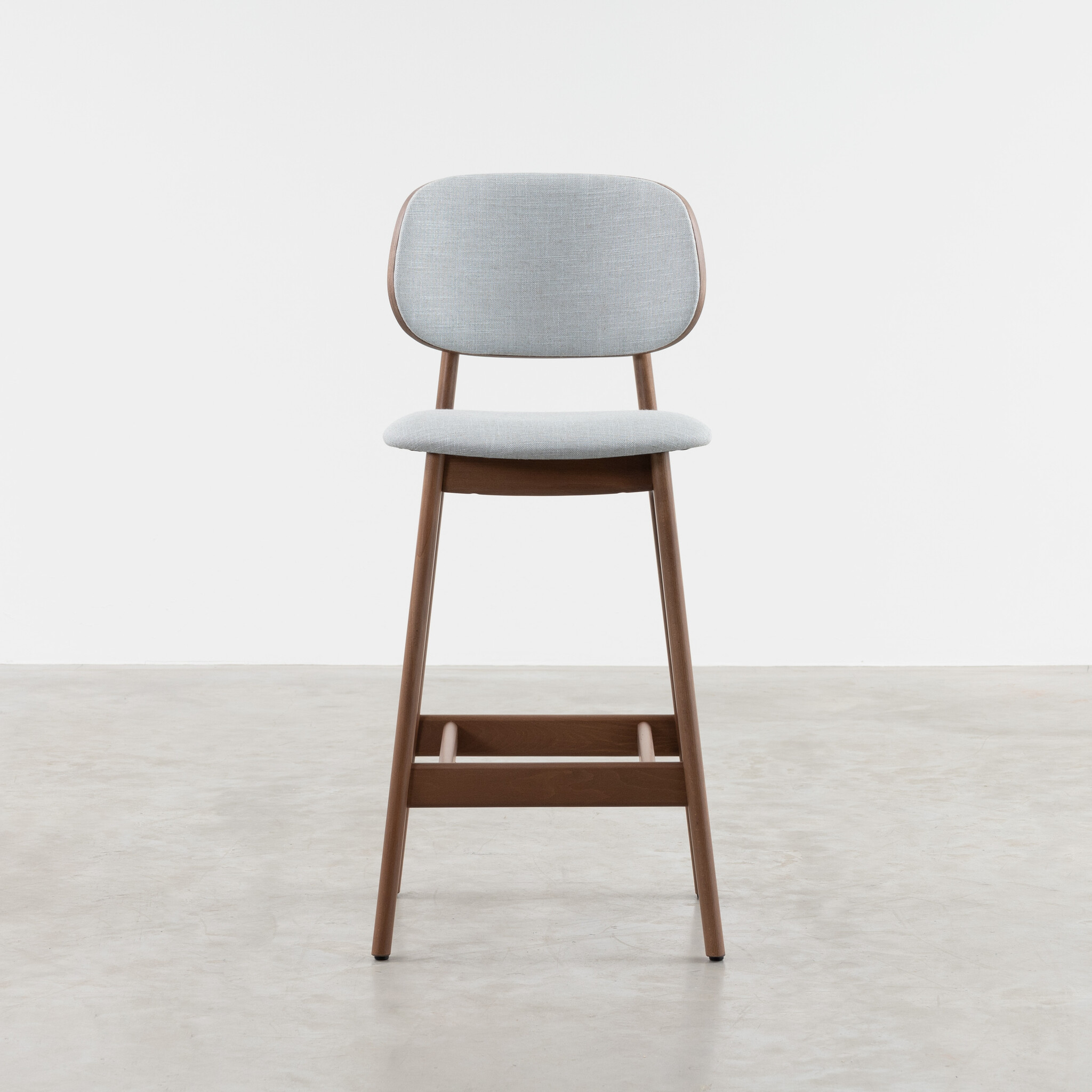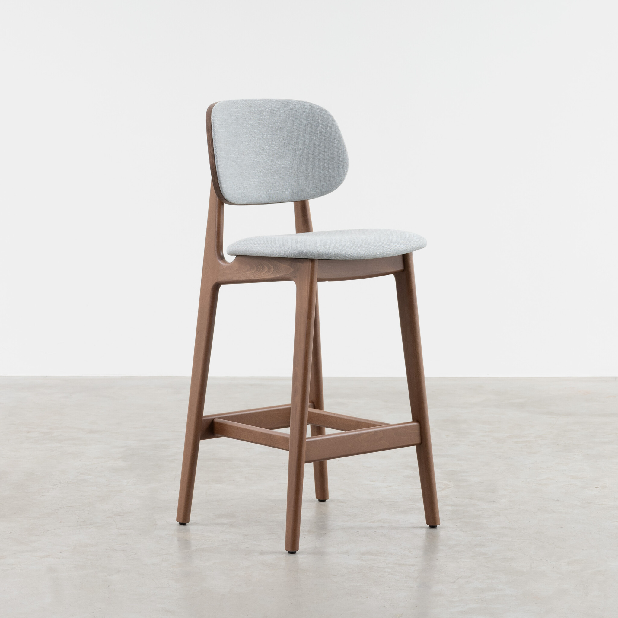 The Sinni counter bar chair with upholstered back and seat (seat height 69 cm) is a charming and timeless counter bar chair with Scandinavian design. Like the other furniture from the Sav & Økse collection, the Sinni is designed from a practical and down-to-earth point of view. It is a counter bar chair with a friendly character and familiar appearance. The counter bar stool is made entirely of high-quality beech wood. The tapered legs support the curved seat and backrest. Without unnecessary details, this playful counter bar chair is beautiful to look at from every angle. The Sinni counter bar chairs offer extra comfort with an upholstered back & seat in Piquet fabric.