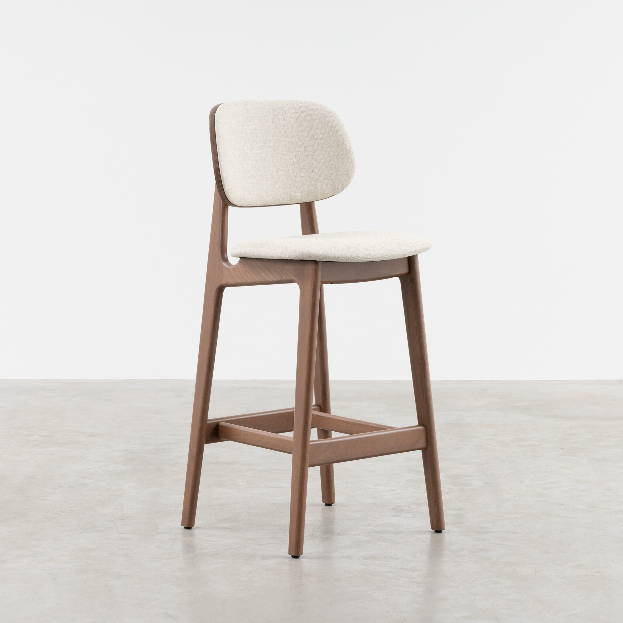 The Sinni counter bar chair with upholstered back and seat (seat height 69 cm) is a charming and timeless counter bar chair with Scandinavian design. Like the other furniture from the Sav & Økse collection, the Sinni is designed from a practical and down-to-earth point of view. It is a counter bar chair with a friendly character and familiar appearance. The counter bar stool is made entirely of high-quality beech wood. The tapered legs support the curved seat and backrest. Without unnecessary details, this playful counter bar chair is beautiful to look at from every angle. The Sinni counter bar chairs offer extra comfort with an upholstered back & seat in Piquet fabric.