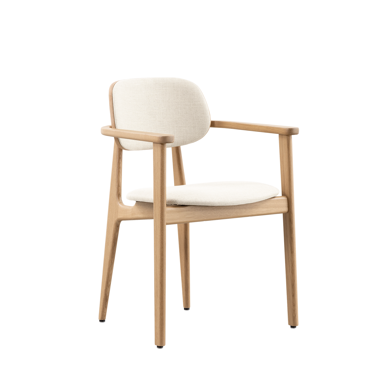 The Sinni with armrests is a charming and timeless chair with Scandinavian design. Made entirely of high-quality oak wood. Without unnecessary details, this playful dining room chair is beautiful to look at from every angle.