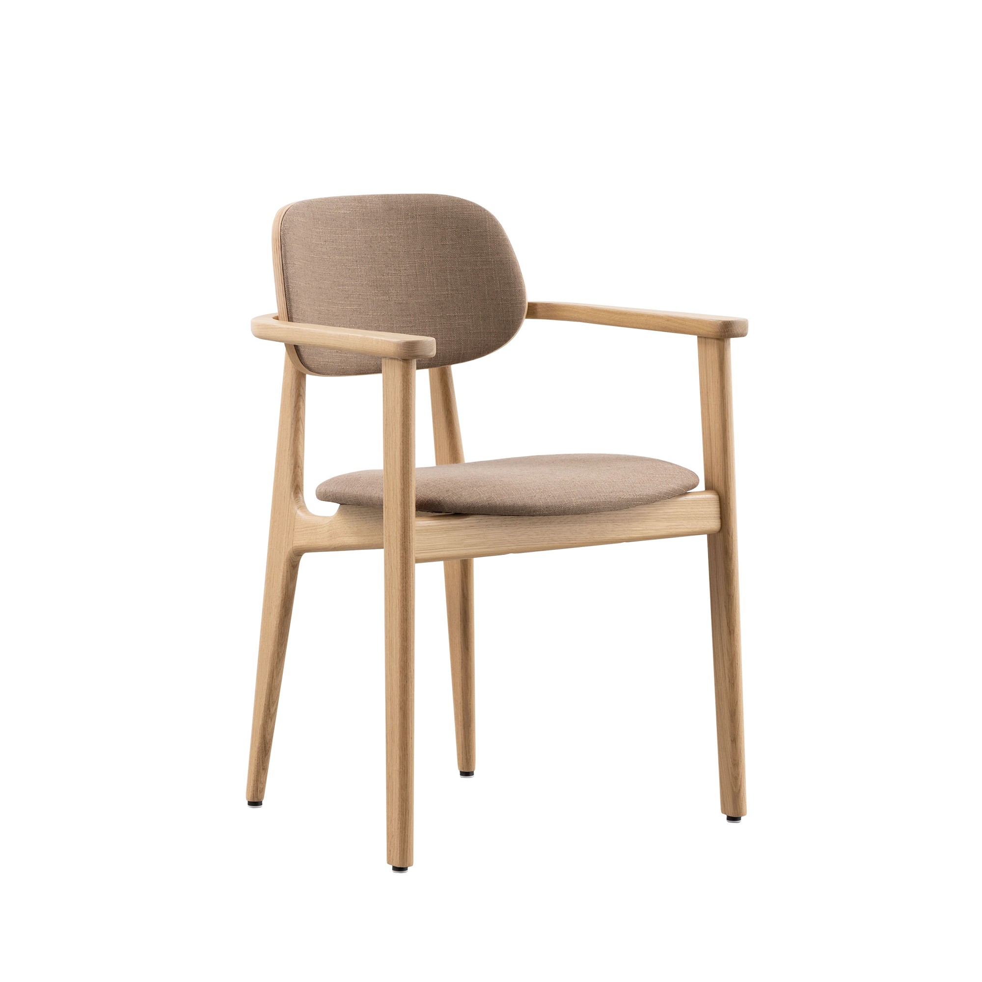 The Sinni with armrests is a charming and timeless chair with Scandinavian design. Made entirely of high-quality oak wood. Without unnecessary details, this playful dining room chair is beautiful to look at from every angle.
